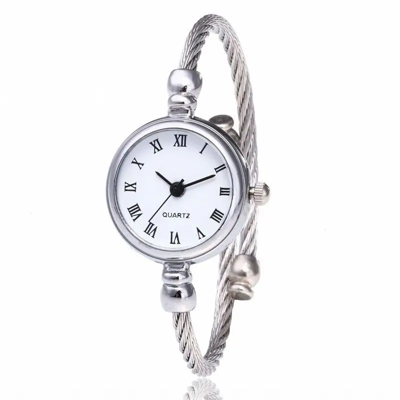 Часы женские кварцевые с маленьким гладким циферблатом, уникальные роскошные Серебристые тонкие наручные часы в корейском ретро стиле, подарок для женщин