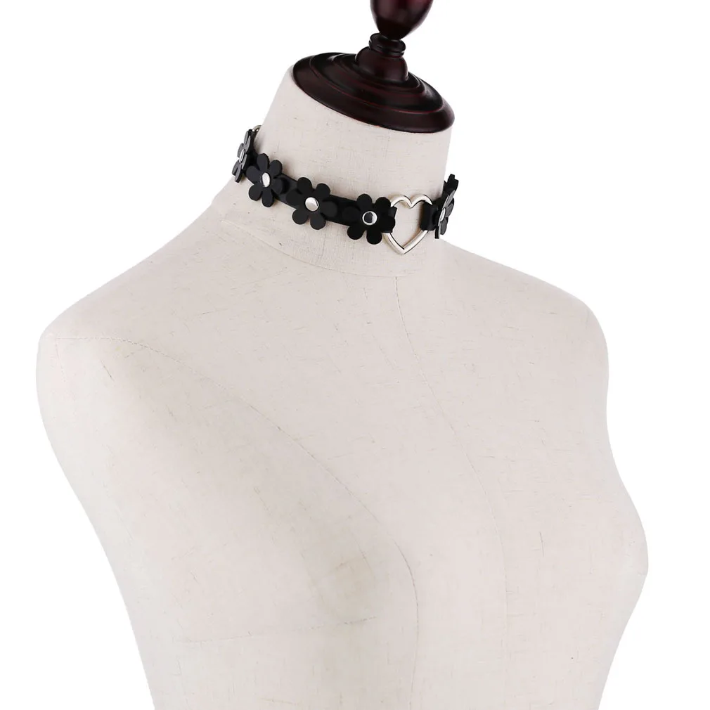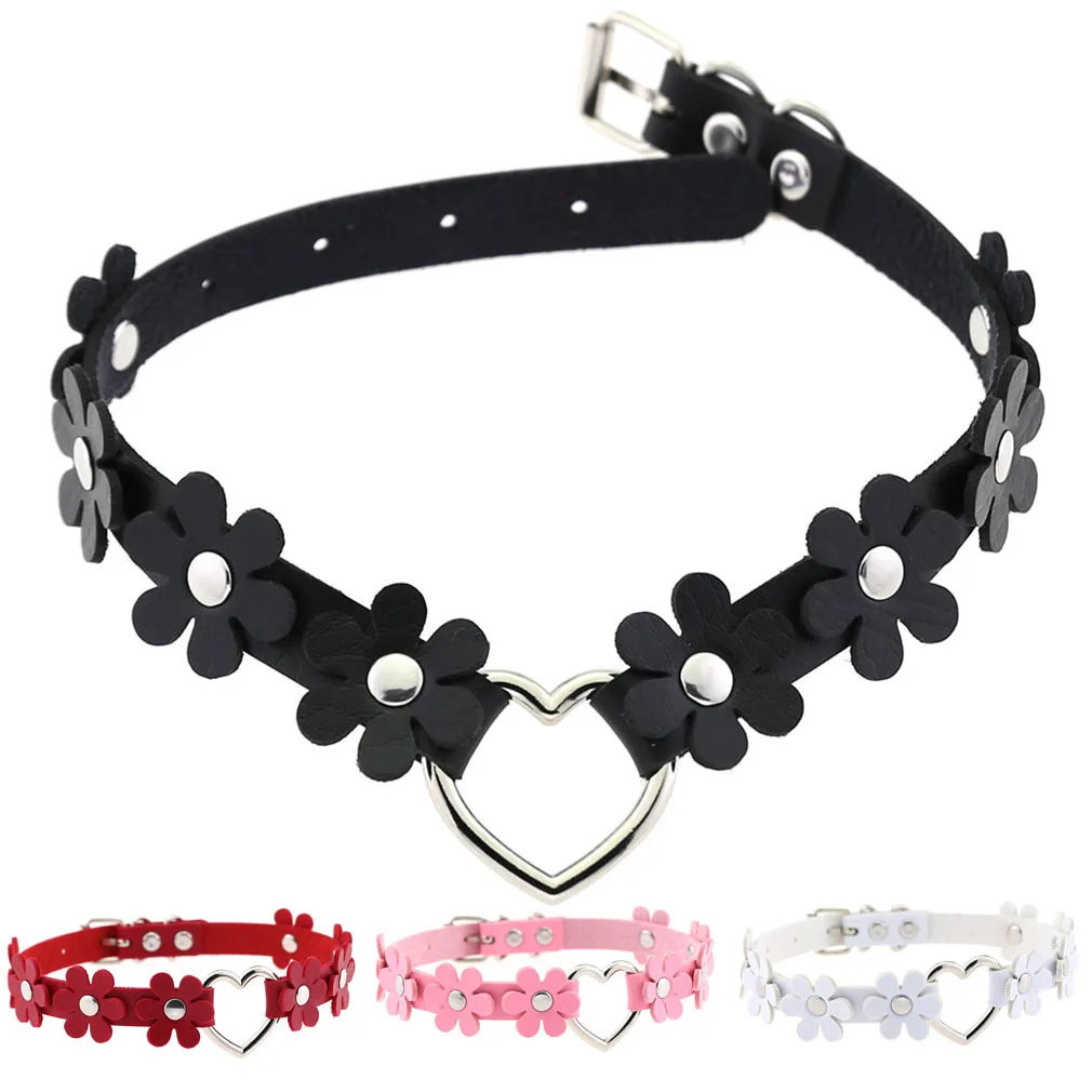 Цветок кожаный ошейник ожерелье каваи Любовь Сердце Готический чокер панк женские девушки Harajuku стимпанк ювелирные изделия