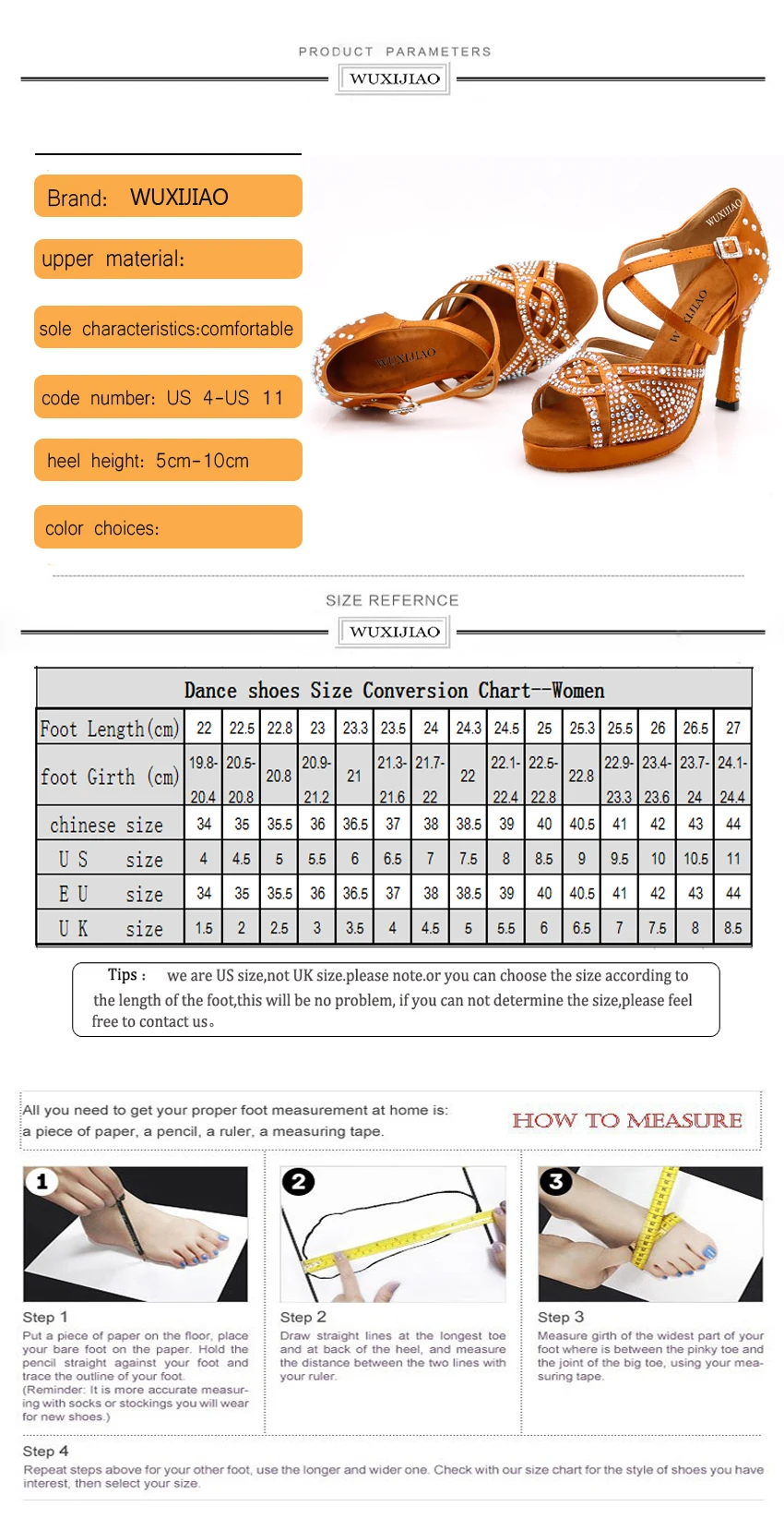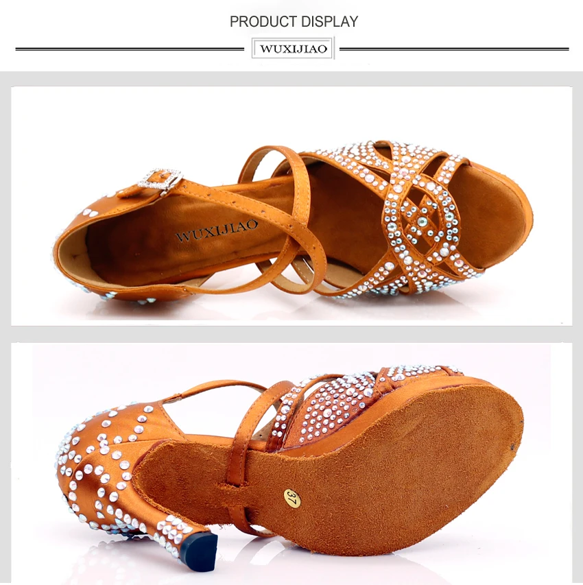 Женские атласные туфли для латиноамериканских танцев WUXIJIAO, непромокаемые туфли на платформе, стразы, Обувь для бальных танцев, цвета бронзы