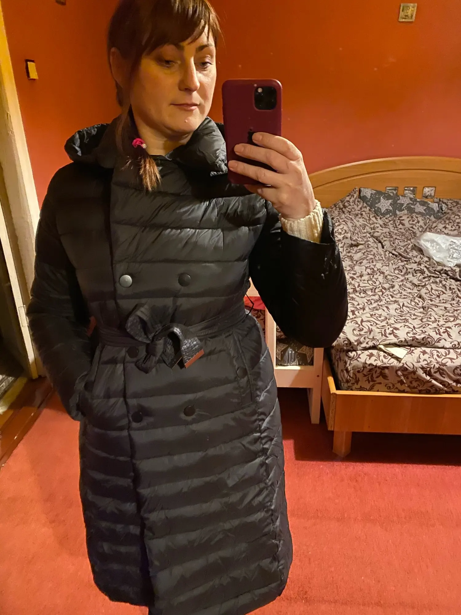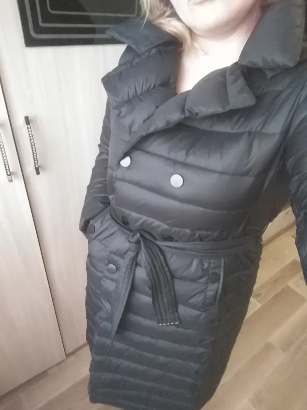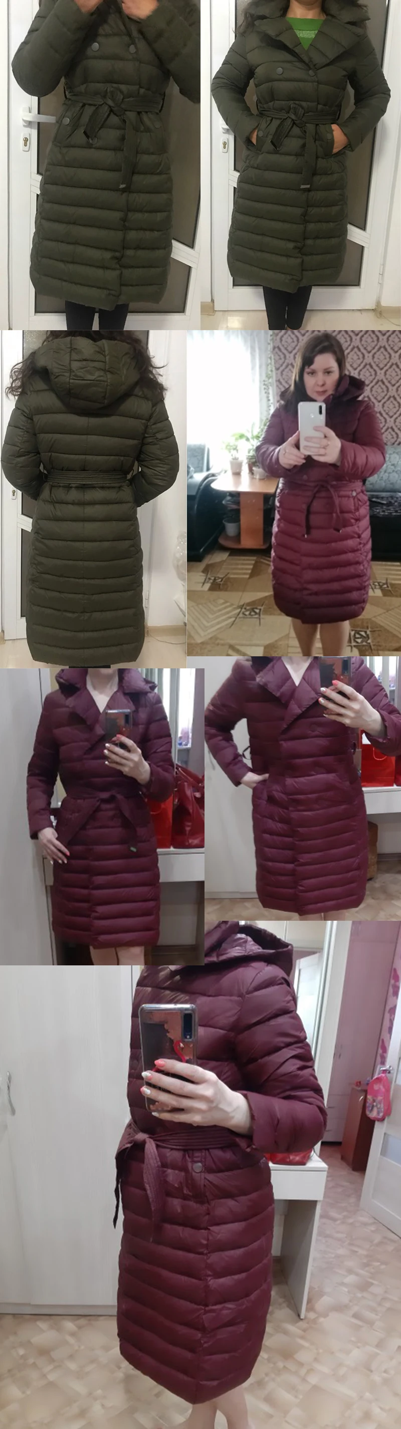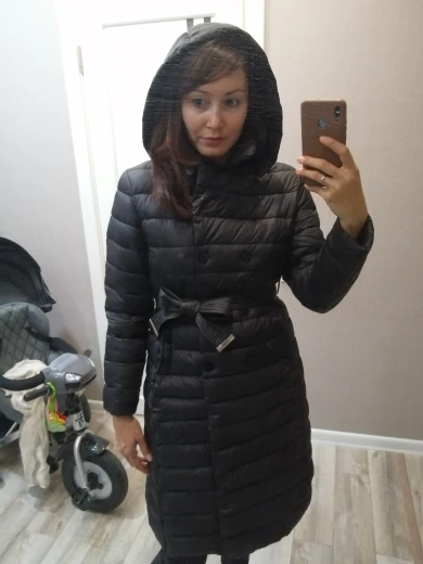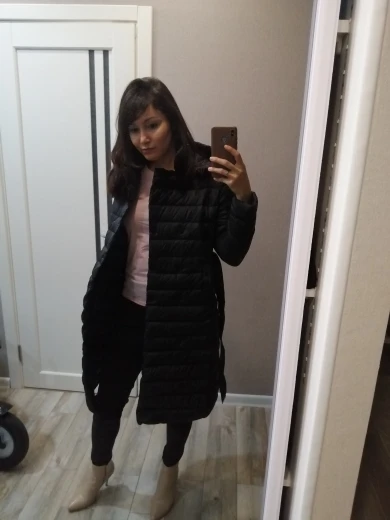 Посылка в Оренбург пришла за 2 недели, упакована в пакет, думала, что придётся отпаривать, но за ночь она отвиселась и выглядела уже нормально. Присоединяюсь ко всем положительным отзывам, мне куртка очень понравилась. Сегодня у нас быдо - 10 и сильный ветер, потом снег. Я не замёрзла, куртку не продувало, я не намокла, следов от снега тоже не было. Но в - 20 я бы ее конечно не одела, если только на машине ездить. На свой ОГ 99, заказала XL, село как я люблю без особого запаса, но и не тянет-по фигуре. Мой рост 164 см, и куртка мне по колено. Талия завышена и соответственно карманы высоковато, на мой вкус и комфорт пояс должен быть ниже, получается в районе середины карманов. Сделала замеры куртки, может кому пригодится :ОГ (прям под рукавами) 52, ОТ (прям над карманами) 50, ОБ (прям под карманами) 65, подол 60 и длина от воротника 98 см. Куртку и продавца рекомендую!