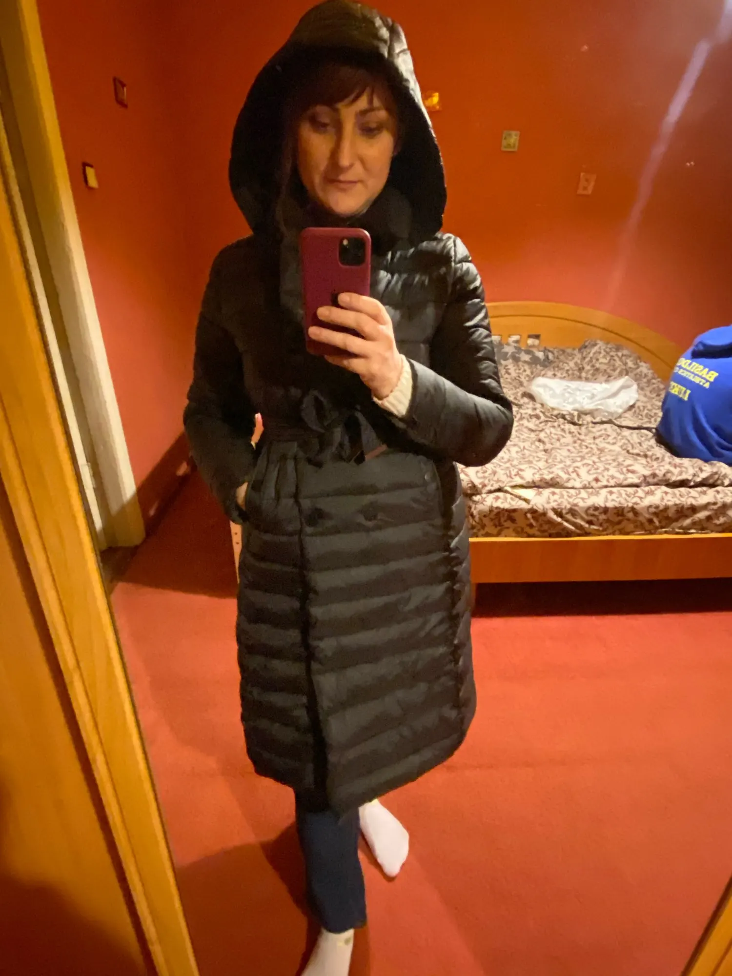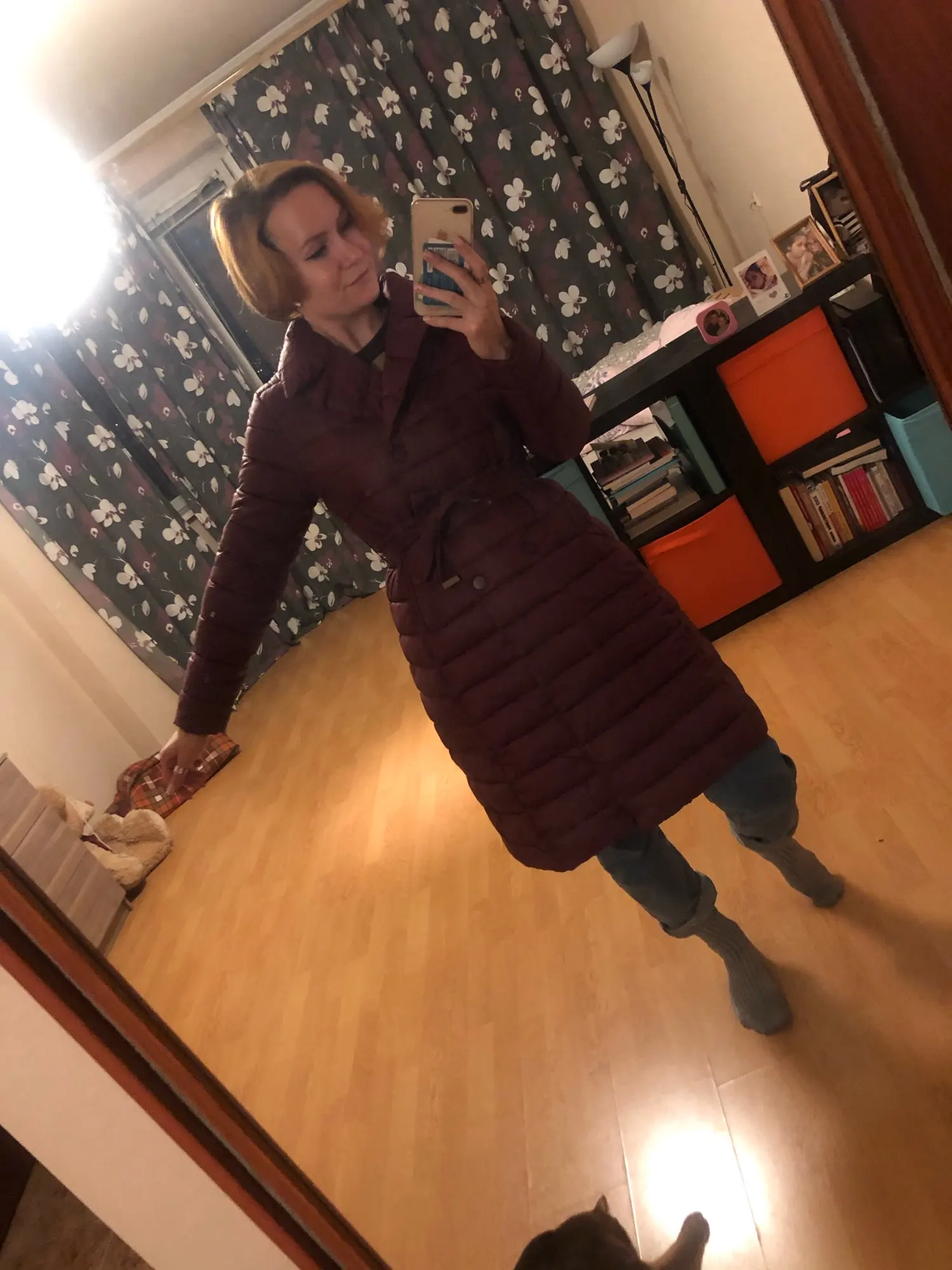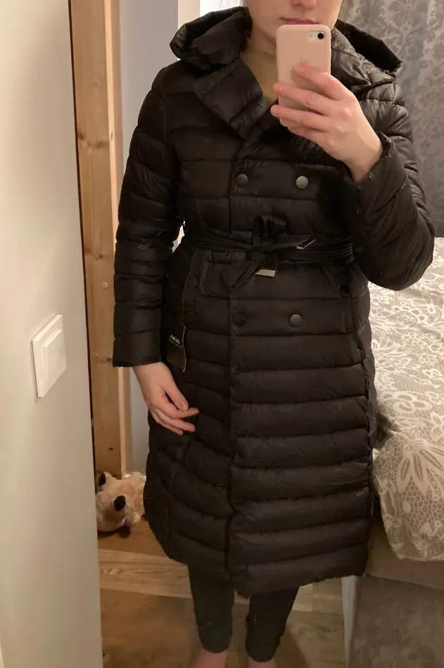 Посылка в Оренбург пришла за 2 недели, упакована в пакет, думала, что придётся отпаривать, но за ночь она отвиселась и выглядела уже нормально. Присоединяюсь ко всем положительным отзывам, мне куртка очень понравилась. Сегодня у нас быдо - 10 и сильный ветер, потом снег. Я не замёрзла, куртку не продувало, я не намокла, следов от снега тоже не было. Но в - 20 я бы ее конечно не одела, если только на машине ездить. На свой ОГ 99, заказала XL, село как я люблю без особого запаса, но и не тянет-по фигуре. Мой рост 164 см, и куртка мне по колено. Талия завышена и соответственно карманы высоковато, на мой вкус и комфорт пояс должен быть ниже, получается в районе середины карманов. Сделала замеры куртки, может кому пригодится :ОГ (прям под рукавами) 52, ОТ (прям над карманами) 50, ОБ (прям под карманами) 65, подол 60 и длина от воротника 98 см. Куртку и продавца рекомендую!
