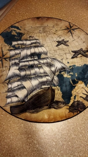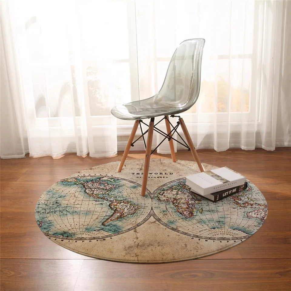 Круглый ковер BeddingOutlet, морской нескользящий коврик, напольный коврик в стиле ретро, карта мира, ракушки океанов, коричневый Игровой Коврик