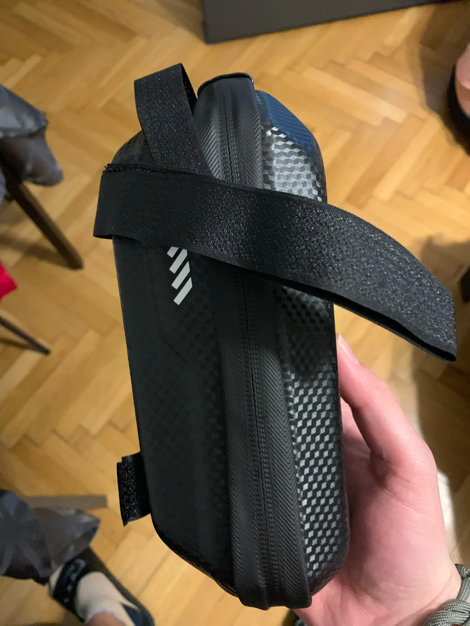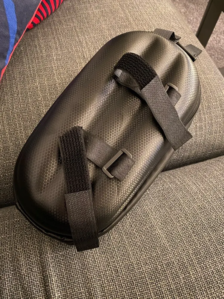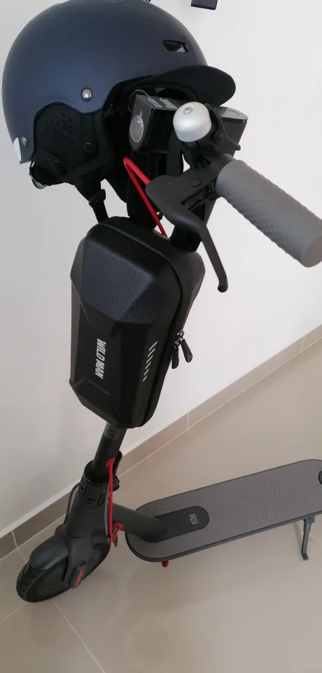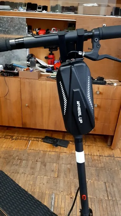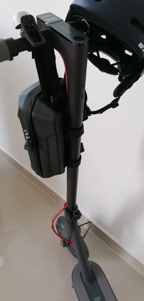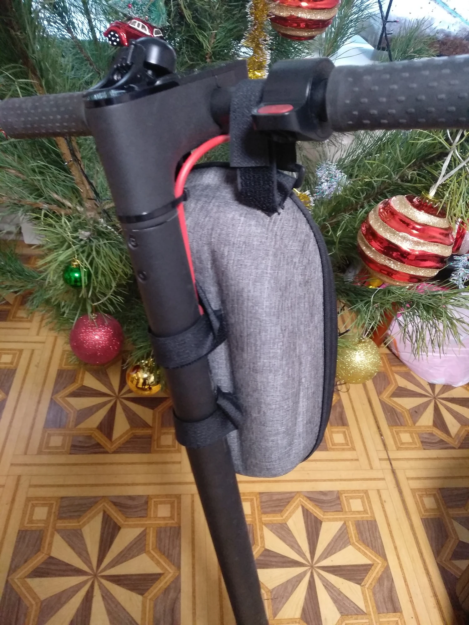 посылка шла 25 дней, немного помялась сумка, качество в целом хорошее, на липучках отлично села на стойку руля самоката.