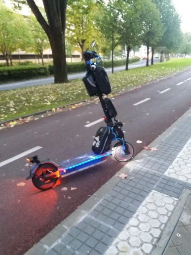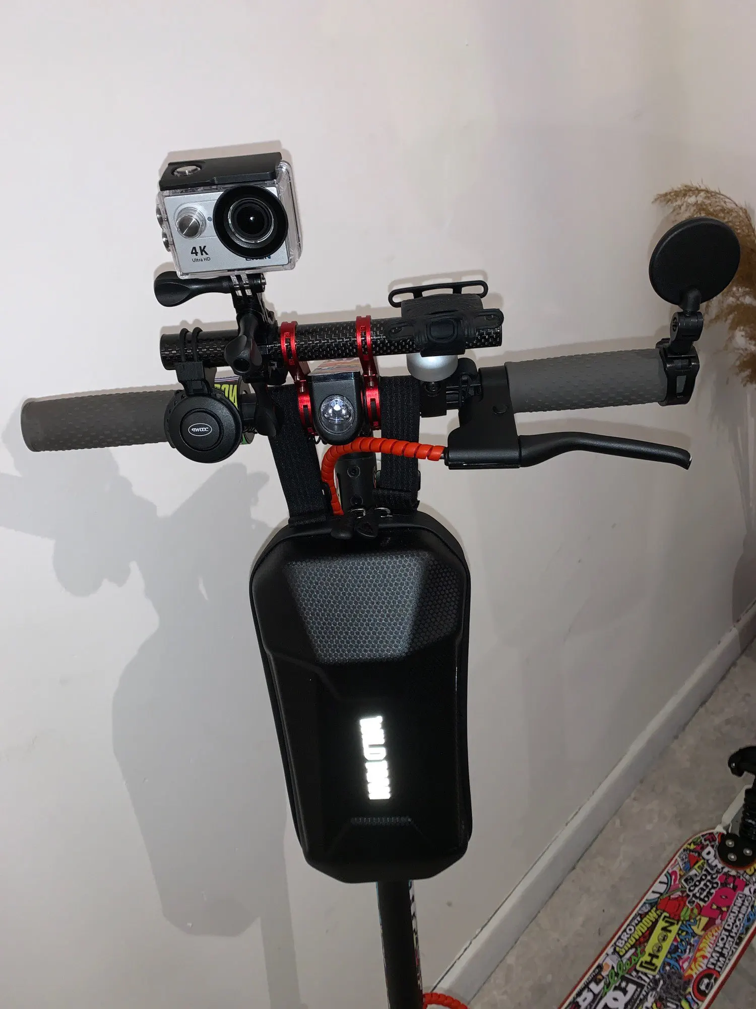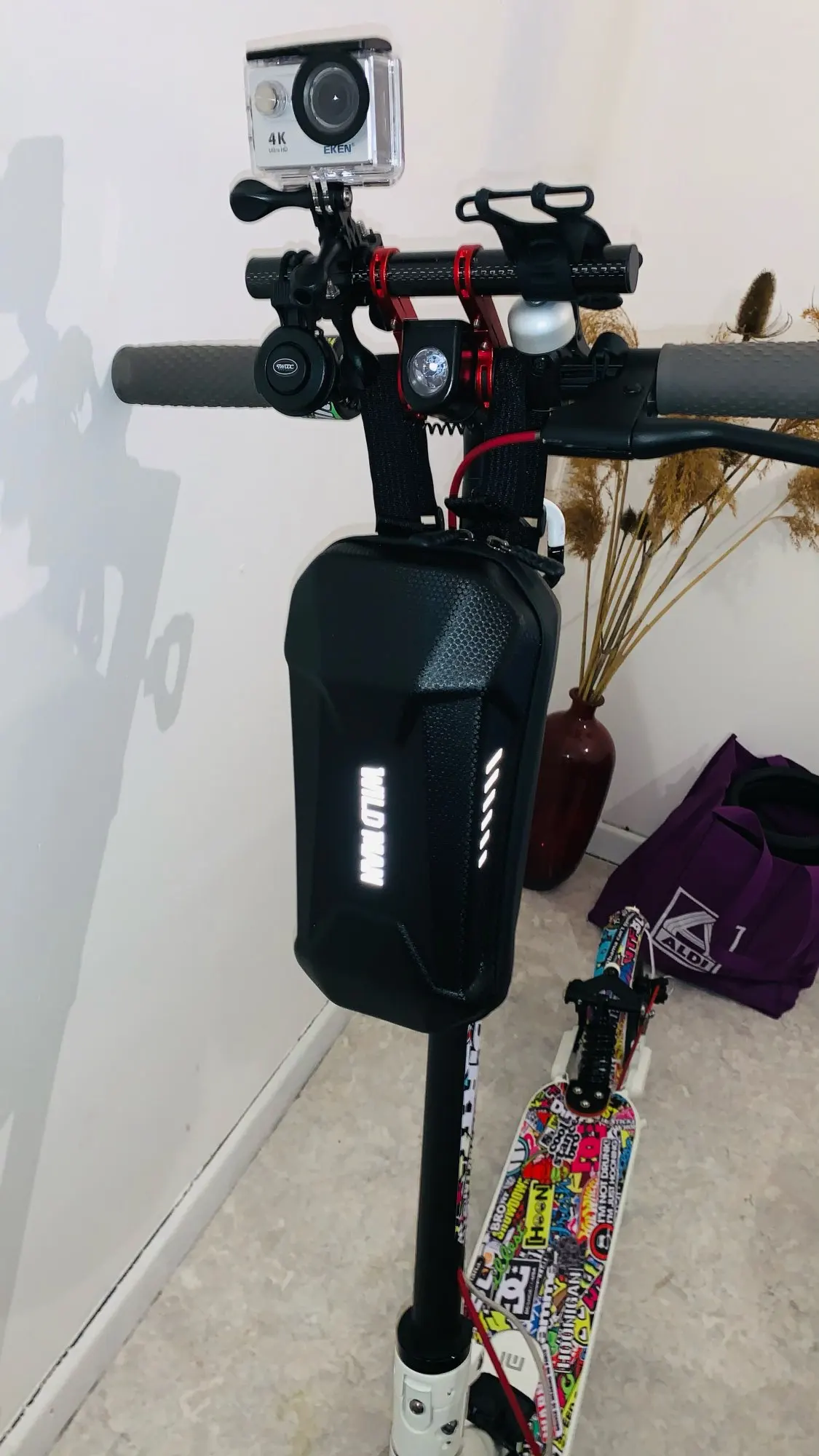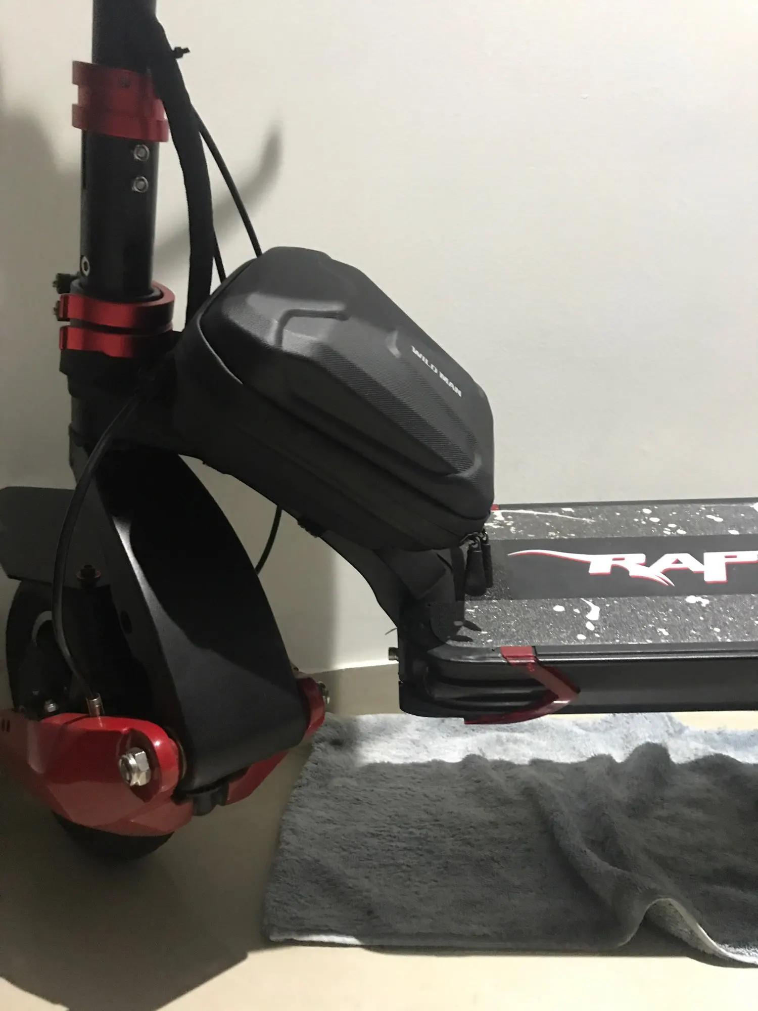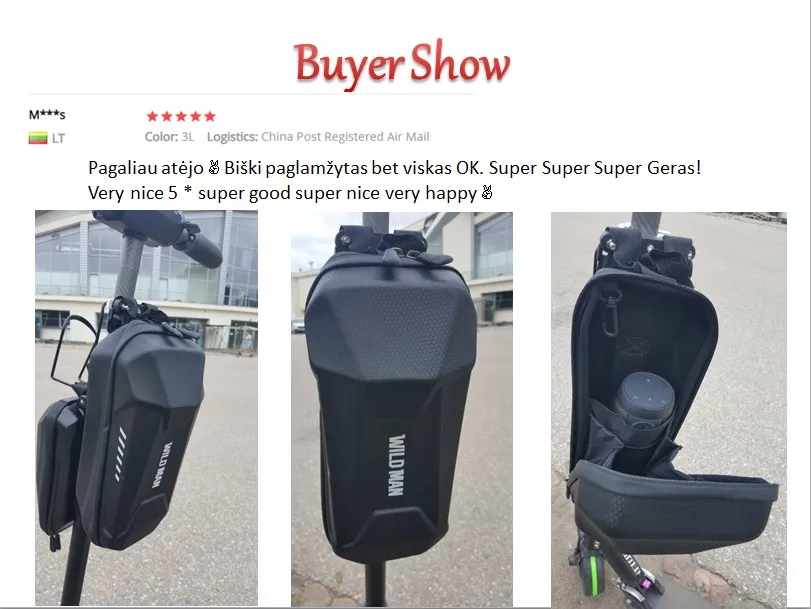 посылка шла 25 дней, немного помялась сумка, качество в целом хорошее, на липучках отлично села на стойку руля самоката.