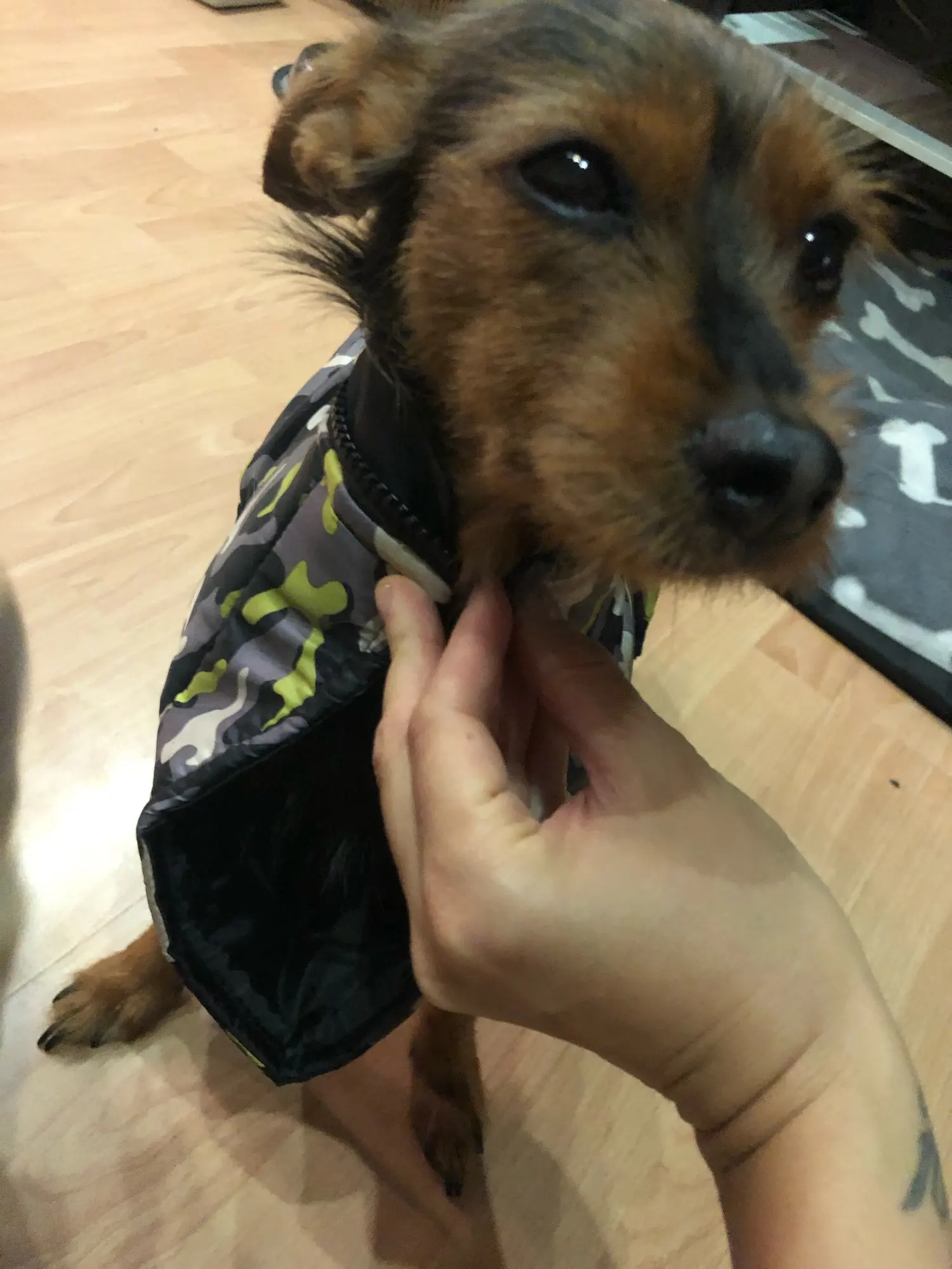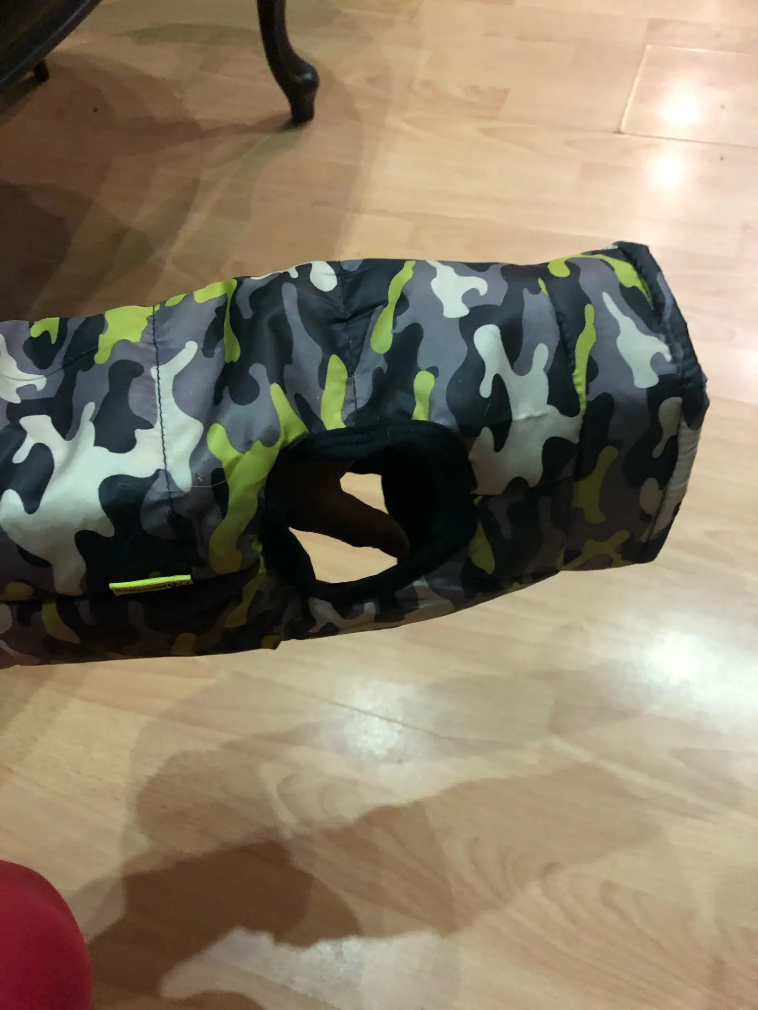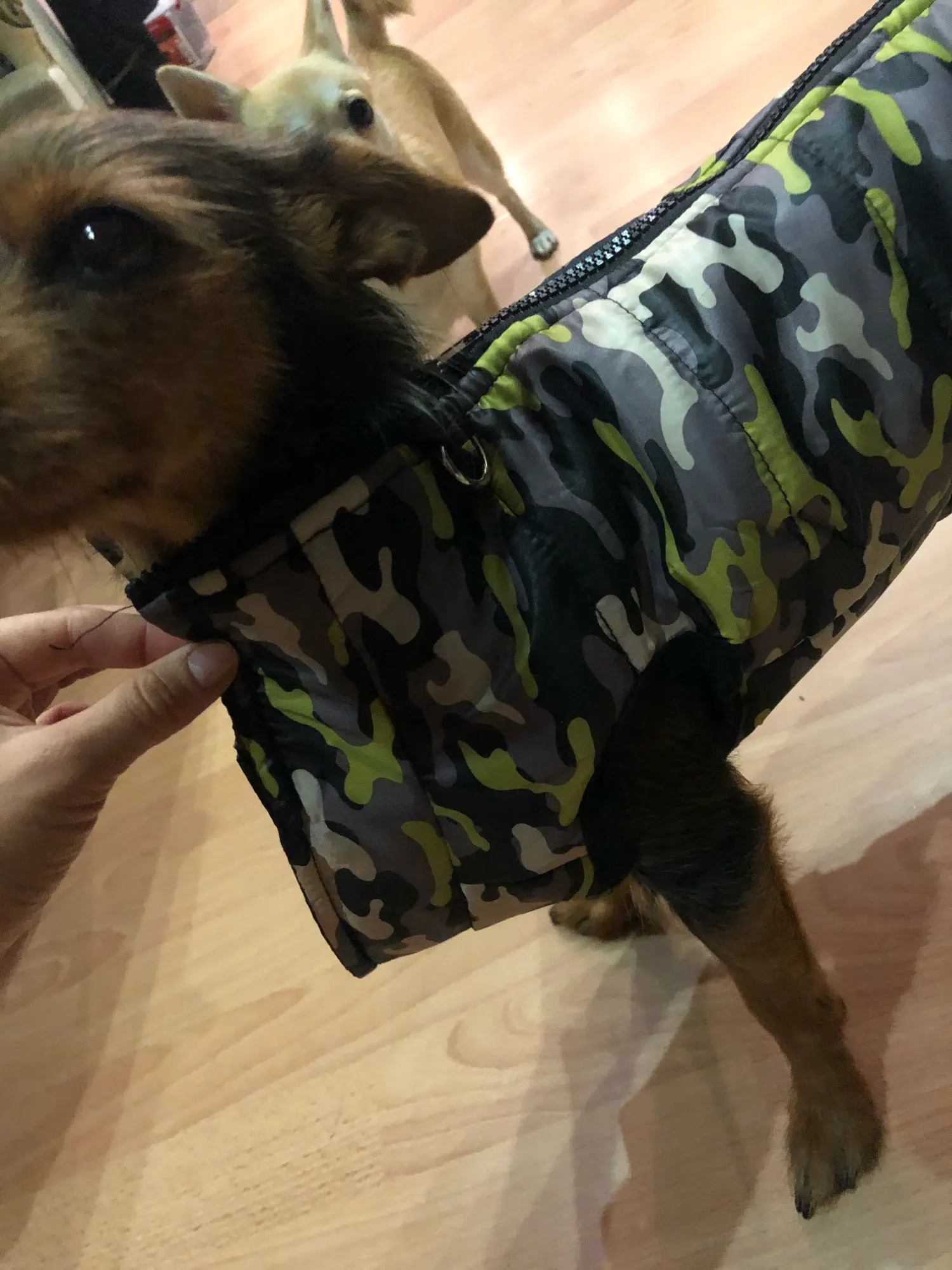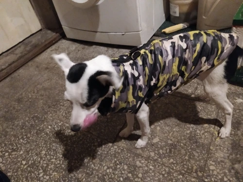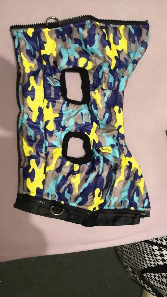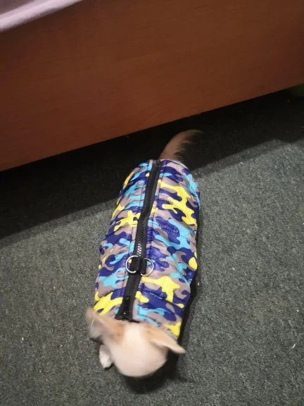 Куртка хорошего материала и отличного цвета. Но форма модели странная. Он идет прямо и имеет горизонтальное отверстие для шеи собаки, а не на верхней стороне. По крайней мере, это не работает для моей собаки вокруг шеи. Возможно, куртка большего размера будет более свободной, и это поможет решить проблему.