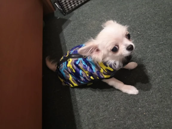 Куртка для собаки, все подошло, но очень долгая доставка. Чихуашка 3.5 кг взяла М. Спасибо.