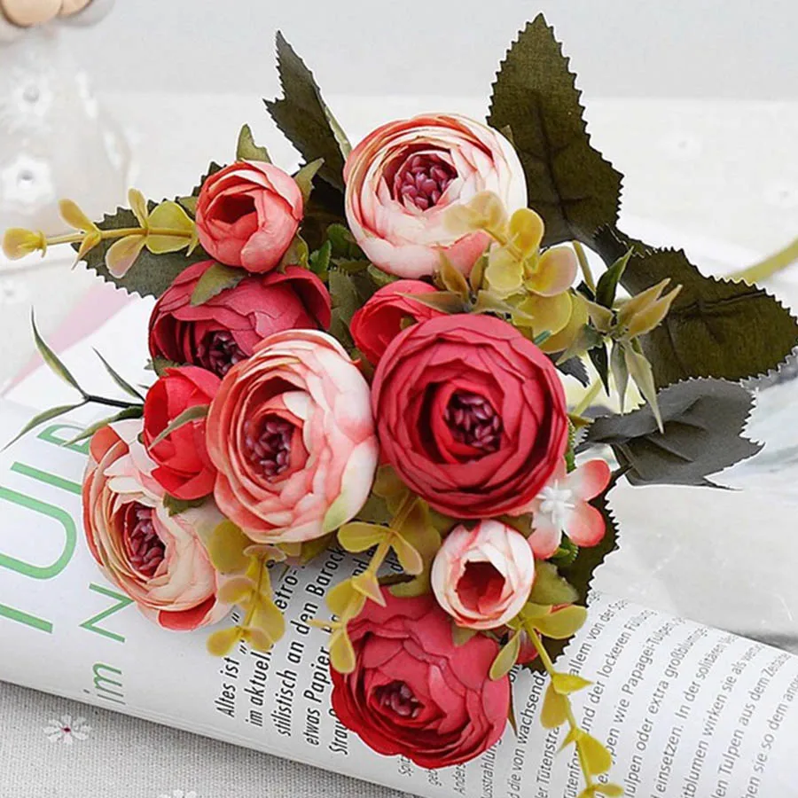 Белые шелковые Чайные розы, искусственные цветы невесты Маленькие искусственные цветы украшения дома высококачественные накладные цветы розы Букет