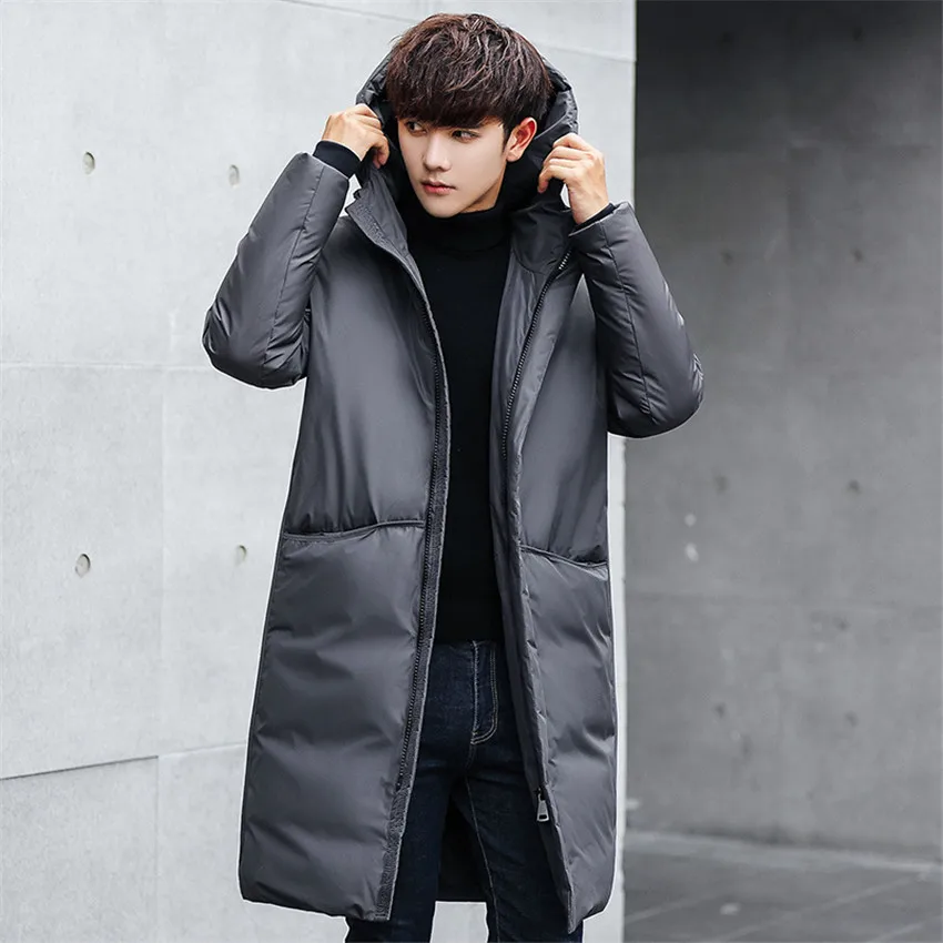 Мужская длинная куртка на утином пуху с капюшоном, Мужская Толстая ...