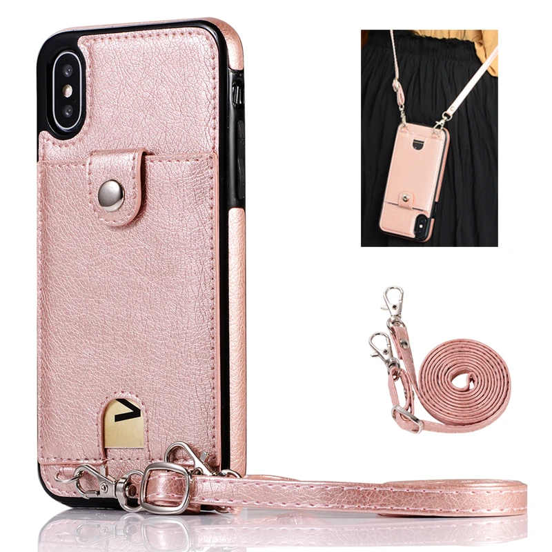 Чехол для iPhone XS MAX XR X 7 8 plus, роскошный чехол из искусственной кожи с отделением для карт и плечевым ремнем, чехлы для телефонов iphone 6 6S plus