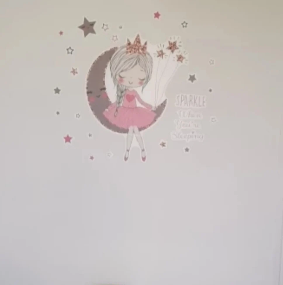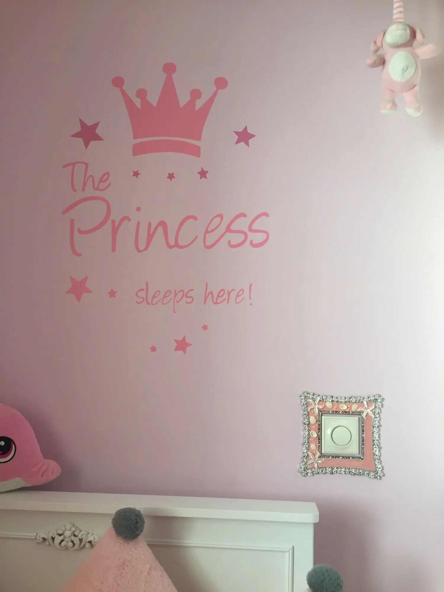 Модная Принцесса Спящая здесь фраза наклейки на стену художественная наклейка для девушки комната Наклейка для детской спальни vinilo сравнению