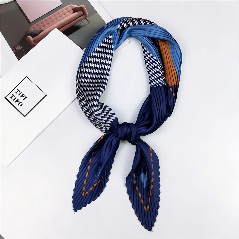 Шарф женский атласный плиссированный, квадратный шелковый платок в горошек, элегантный снуд, накидка, аксессуары для бандан