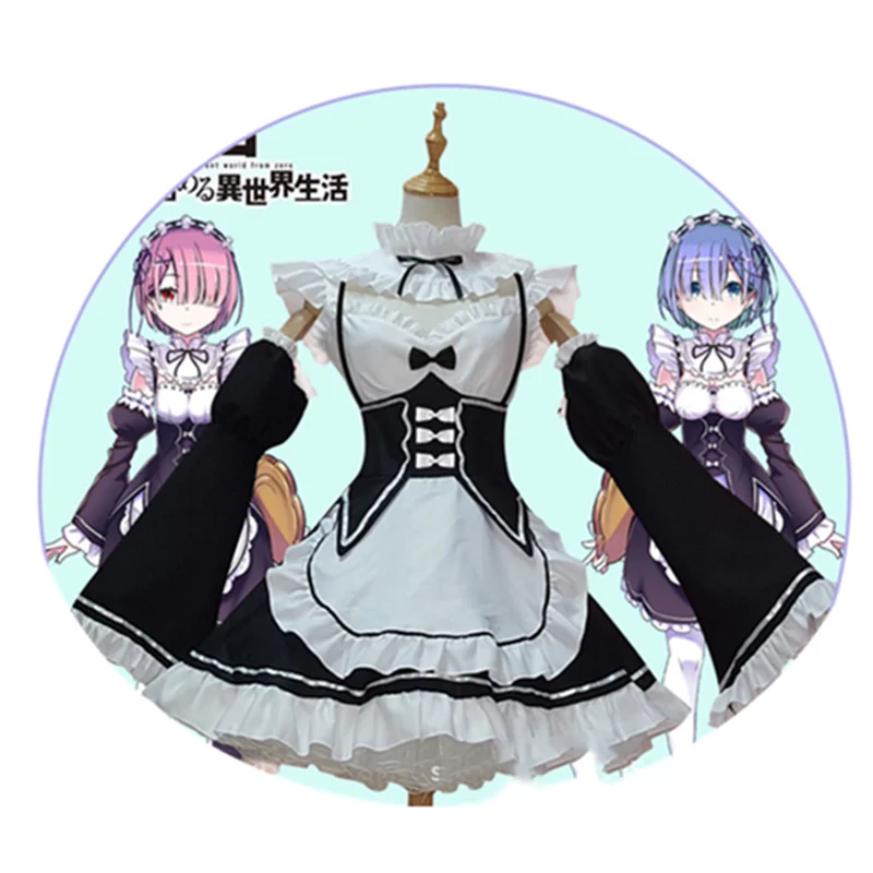 Костюм горничной из японского аниме "Лолита", рам и Рем, Re: Zero, хаджимеру, исекай сейкатсу, косплей