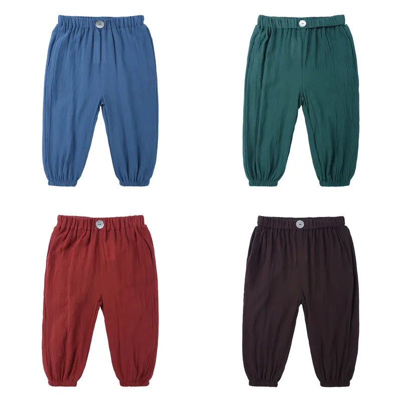 Леггинсы детские, из хлопка и льна, тонкие, однотонные, штанишки для маленьких девочек, От 0 до 7 лет