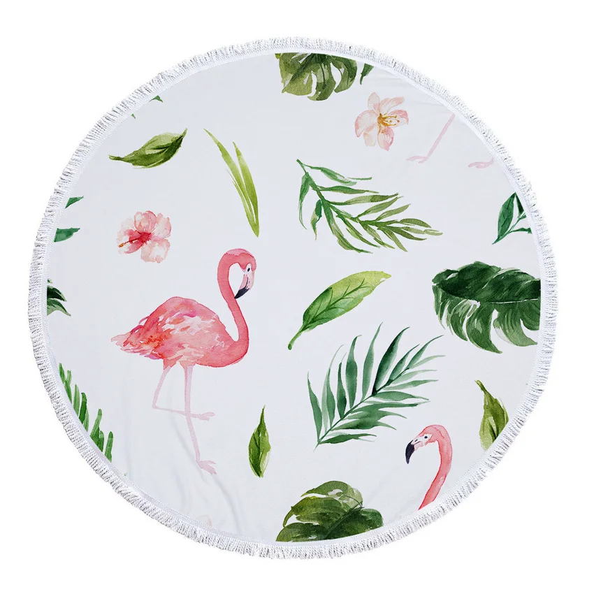 Мягкое летнее круглое пляжное полотенце размером 150 см с изображением фламинго и цветов, s-образное банное полотенце для душа с завязками, сумка для рюкзака, коврик для йоги, покрывало для дивана