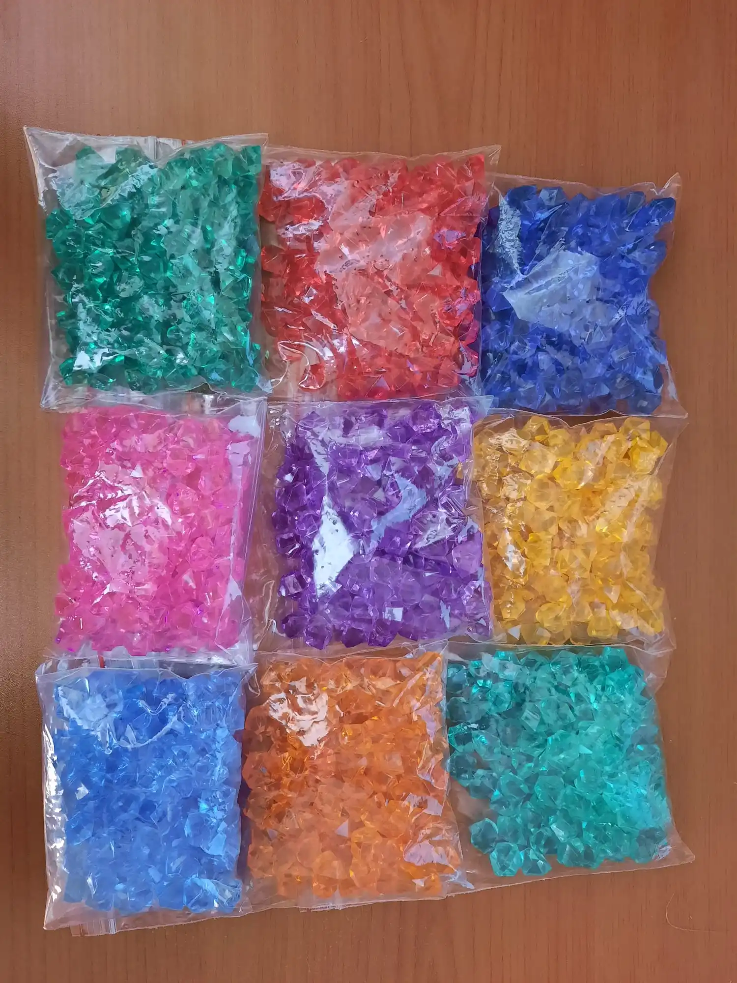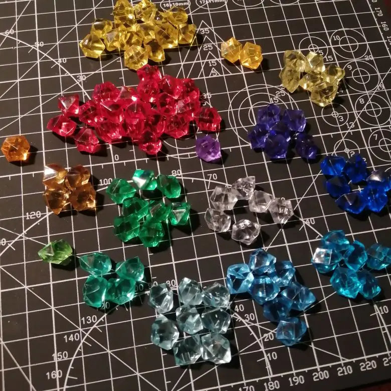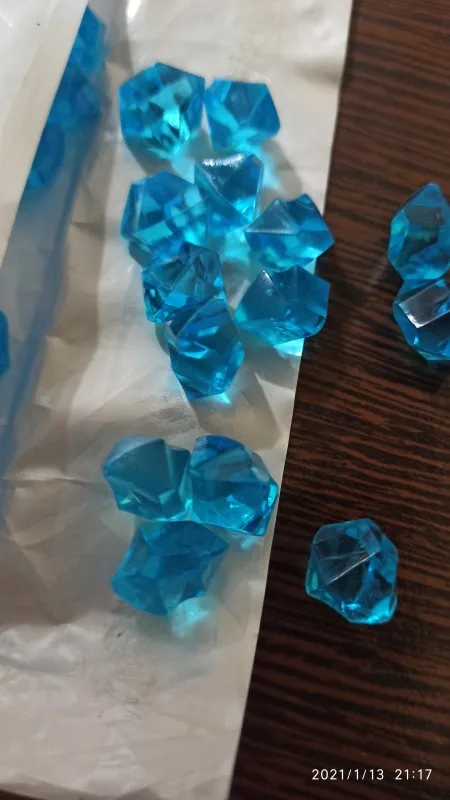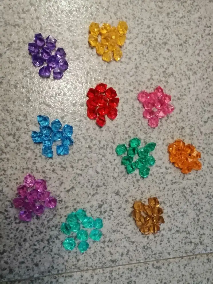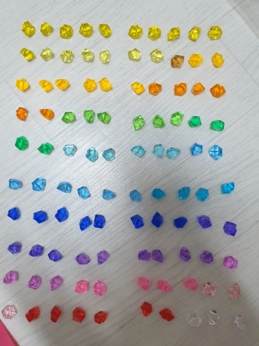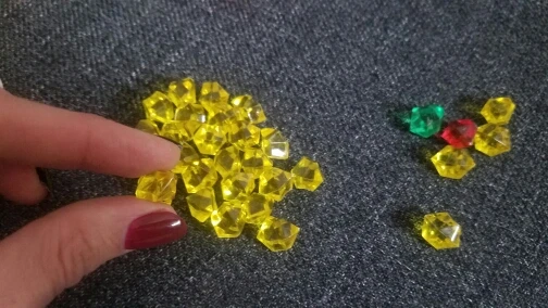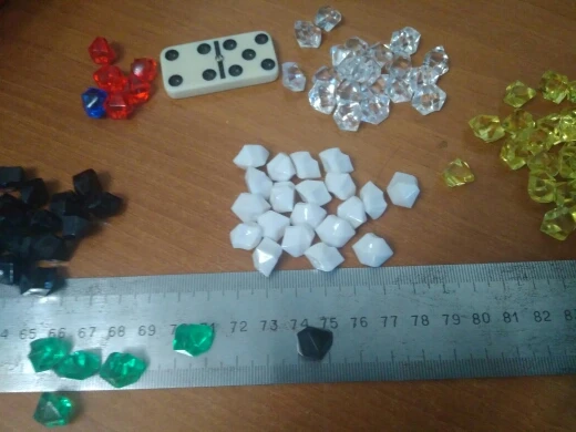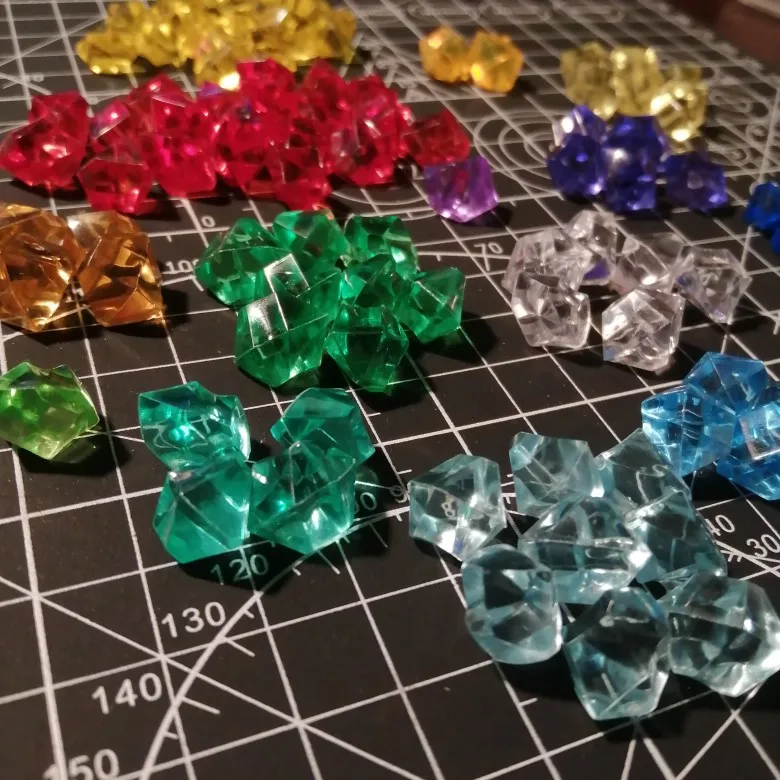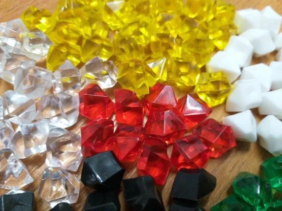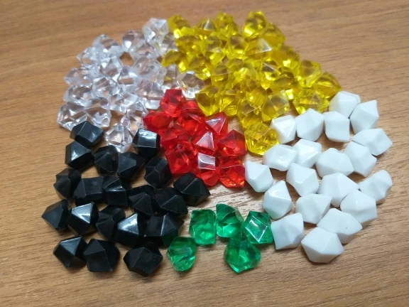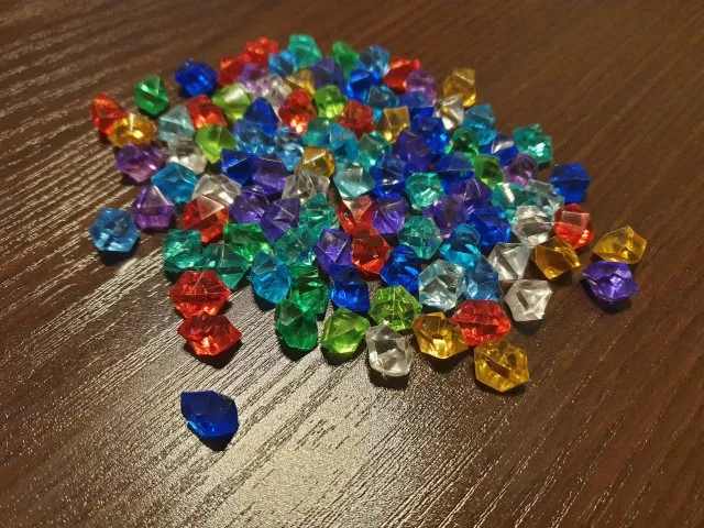 Очень долгая доставка, больше 2 месяцев. Все пришло как в описании: 100 штук. В качестве счётчика очков для настольных игр подходит идеально: выглядят как небольшие драгоценные камни, очень антуражно.