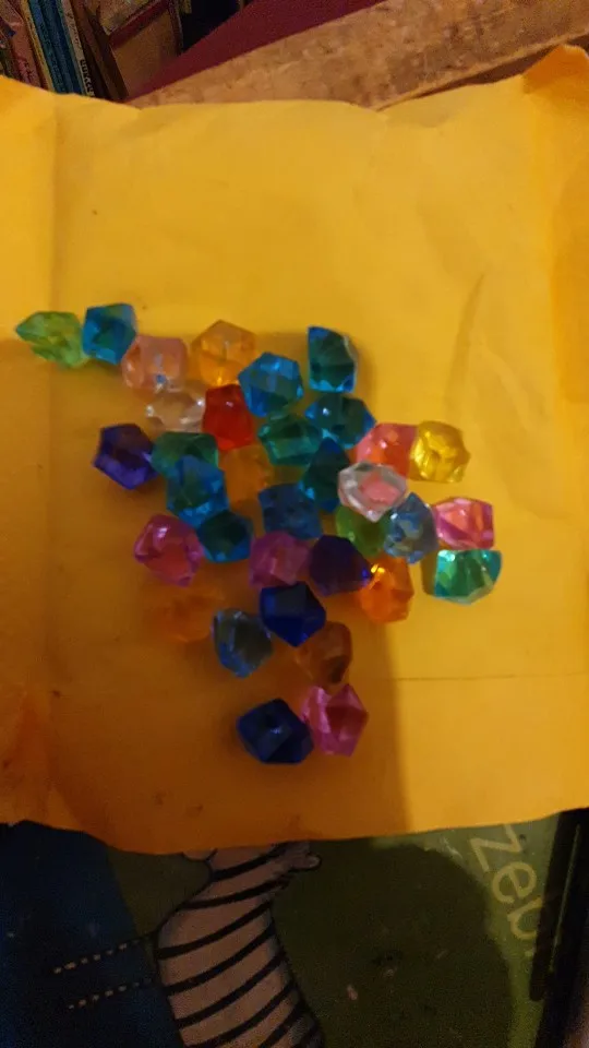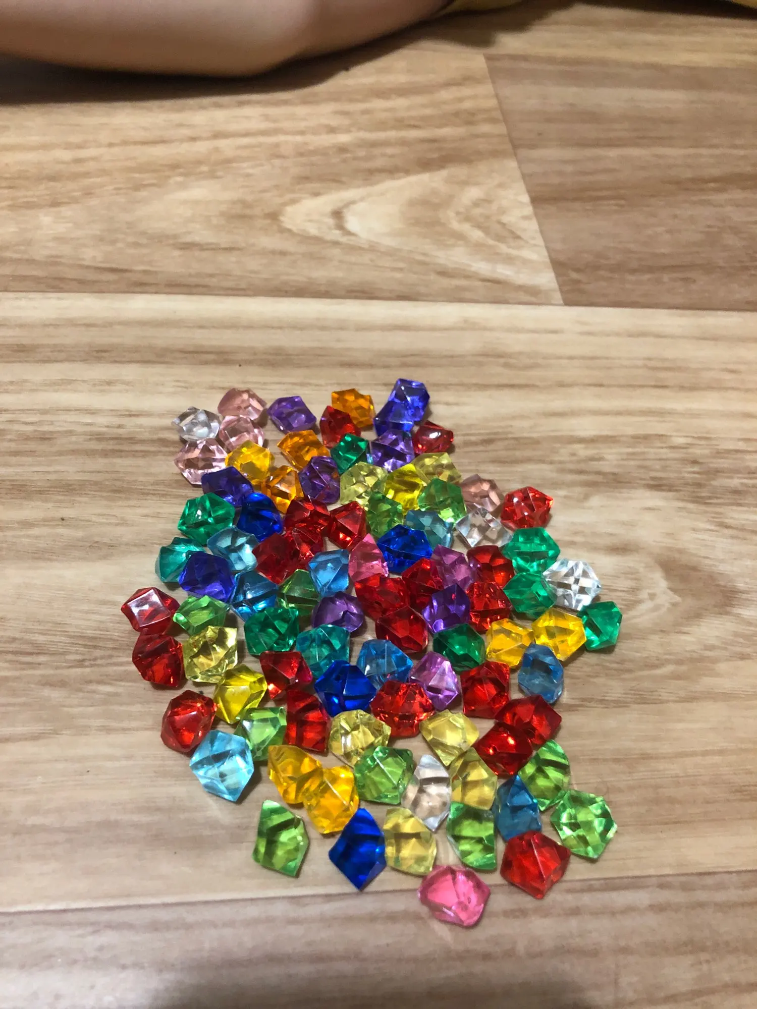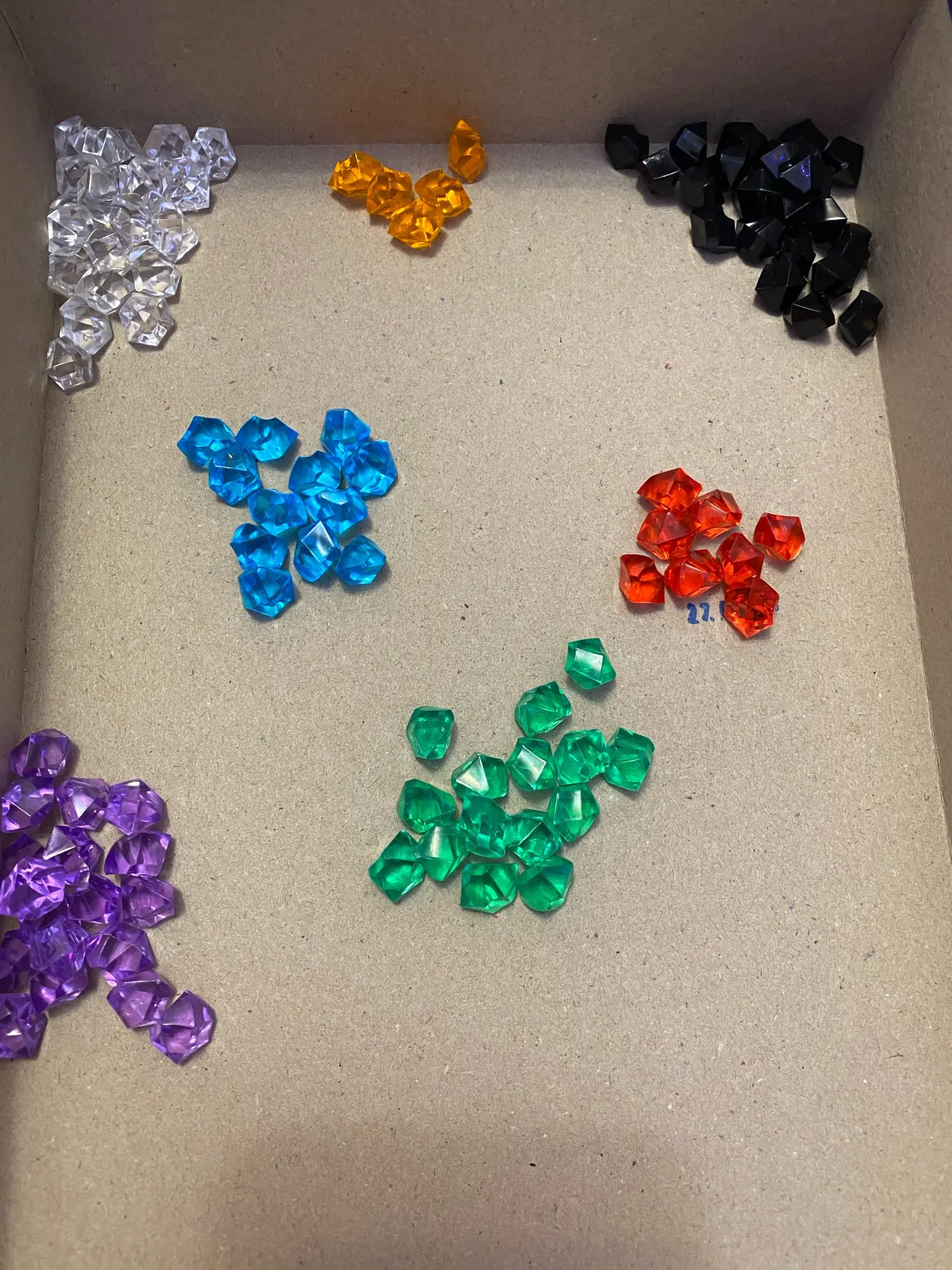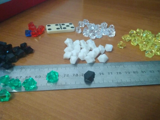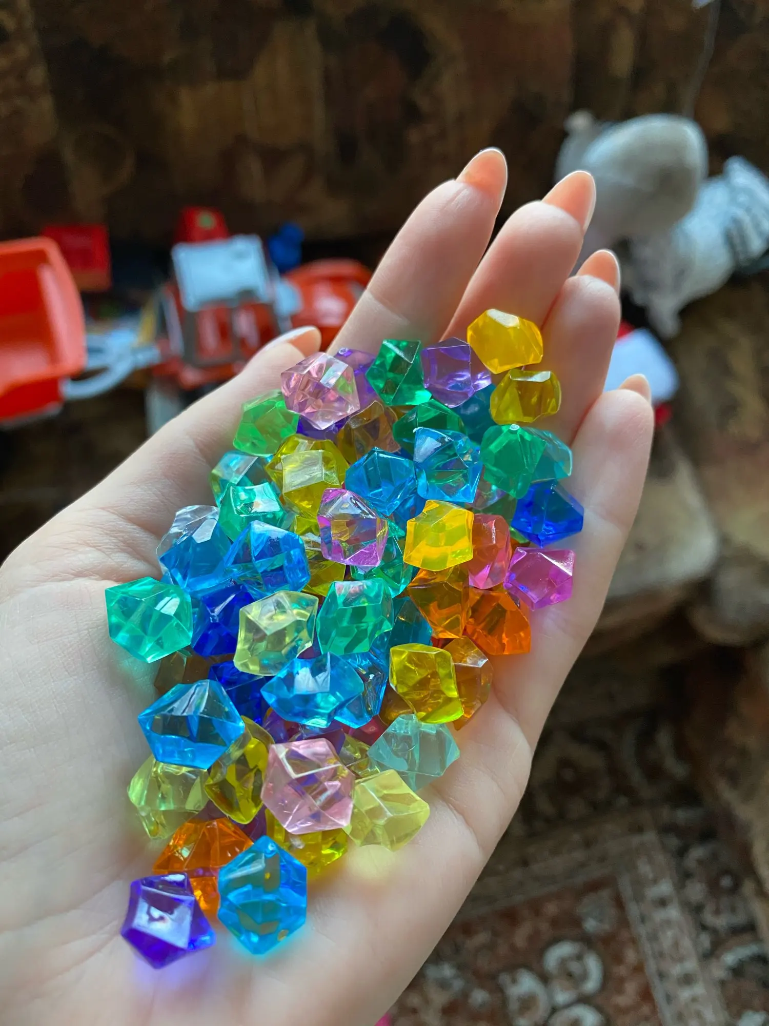 Очень долгая доставка, больше 2 месяцев. Все пришло как в описании: 100 штук. В качестве счётчика очков для настольных игр подходит идеально: выглядят как небольшие драгоценные камни, очень антуражно.