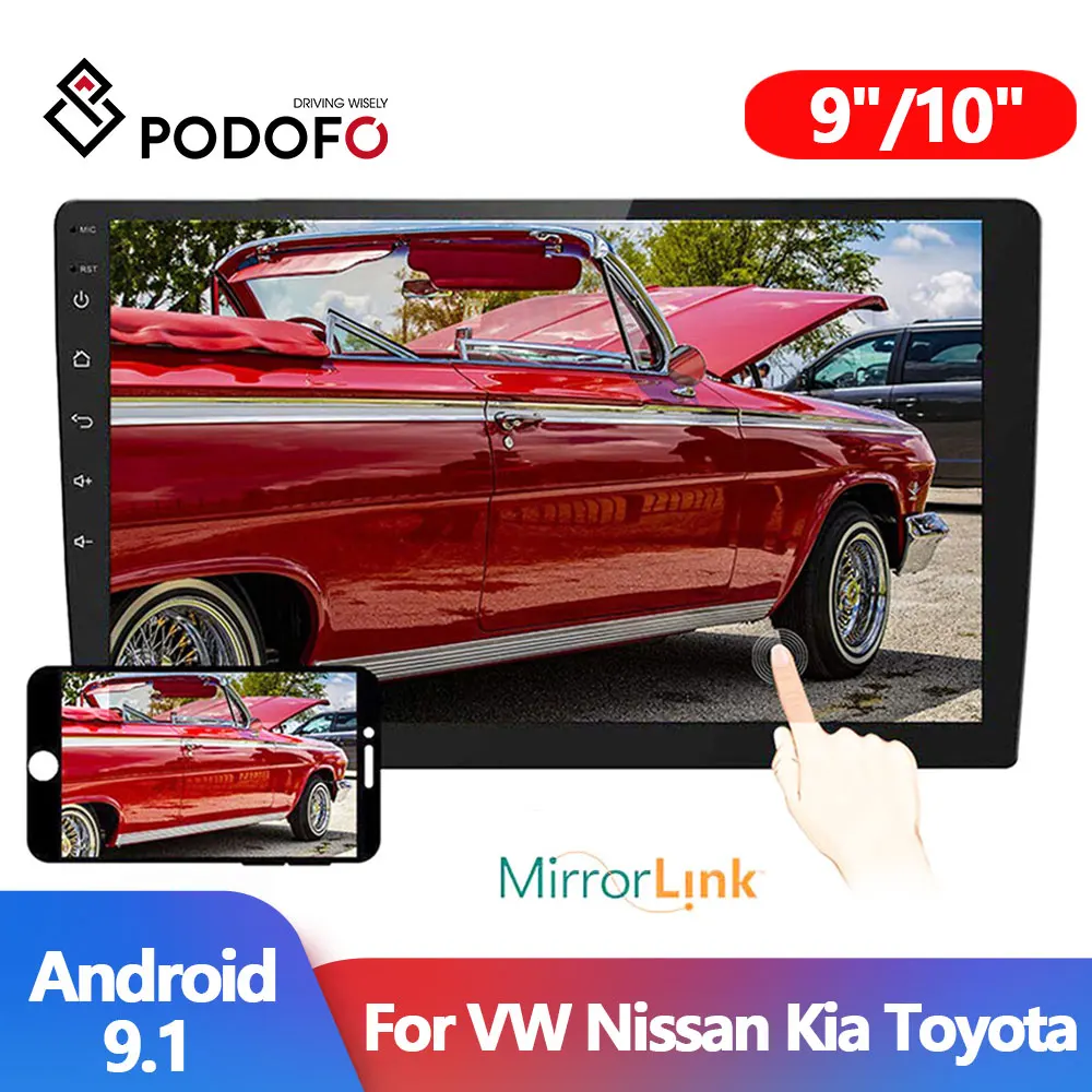 Автомагнитола Podofo, 2 Din, Android 9,1, 910 дюйма, мультимедийный видеоплеер, Универсальный стерео GPS для Volkswagen, Nissan, Hyundai, Kia, Toyota