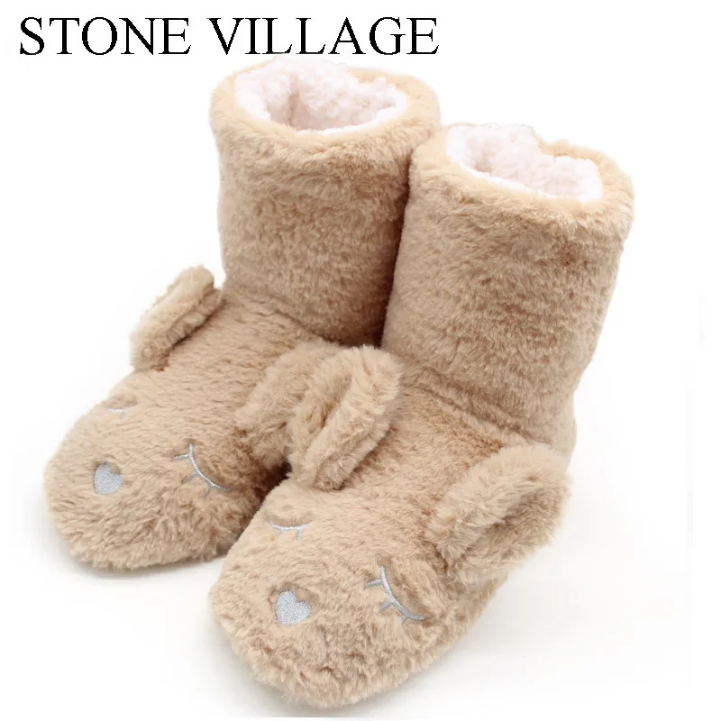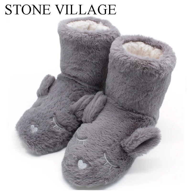 Женские нескользящие домашние туфли STONE Town, черные плюшевые ботинки с принтом кролика, теплая зимняя обувь, 2019 icon star icon star icon star icon star icon star