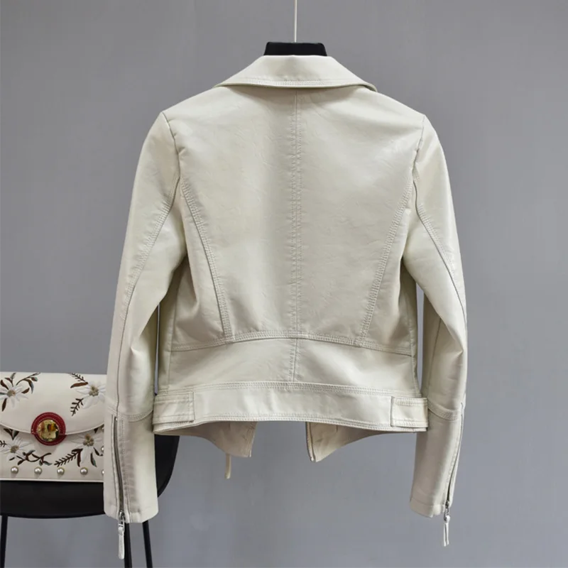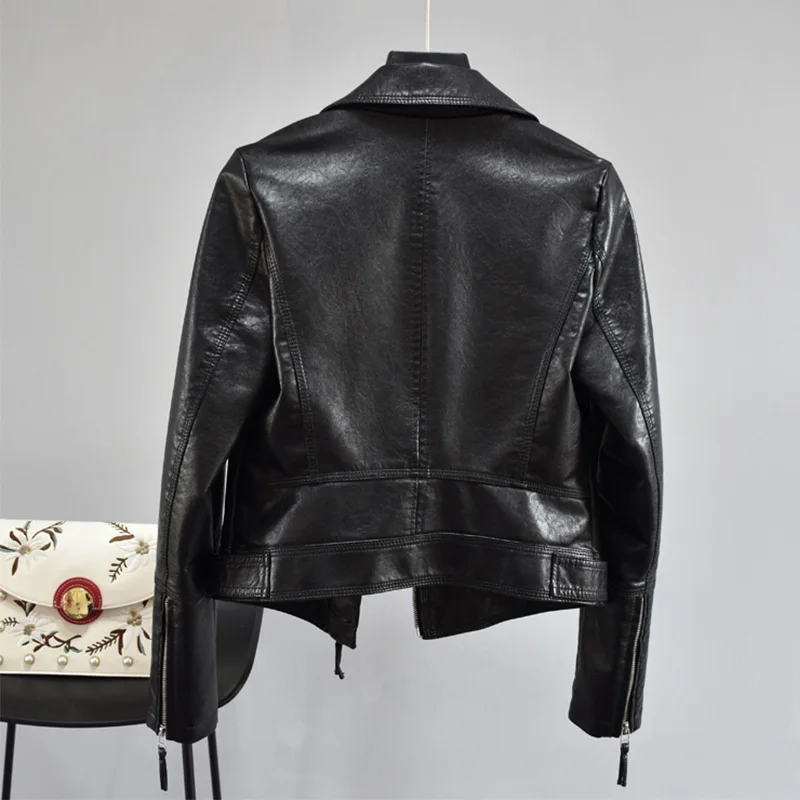Куртка женская осенняя из искусственной кожи на молнии, с отложным воротником