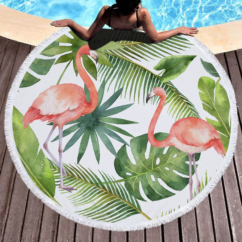 Круглое пляжное полотенце с фламинго и цветами, мягкое летнее банное полотенце для душа, коврик для йоги, накидка на бикини, одеяло на шнурке, рюкзак, сумка