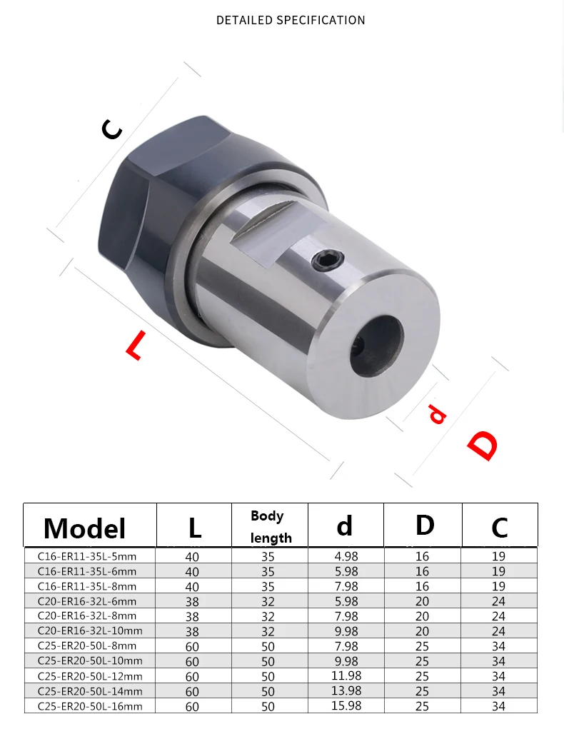 Патрон цанговый C25 ER20 50L C16 ER11 35L 18 8 10 12 14 мм, патрон ...