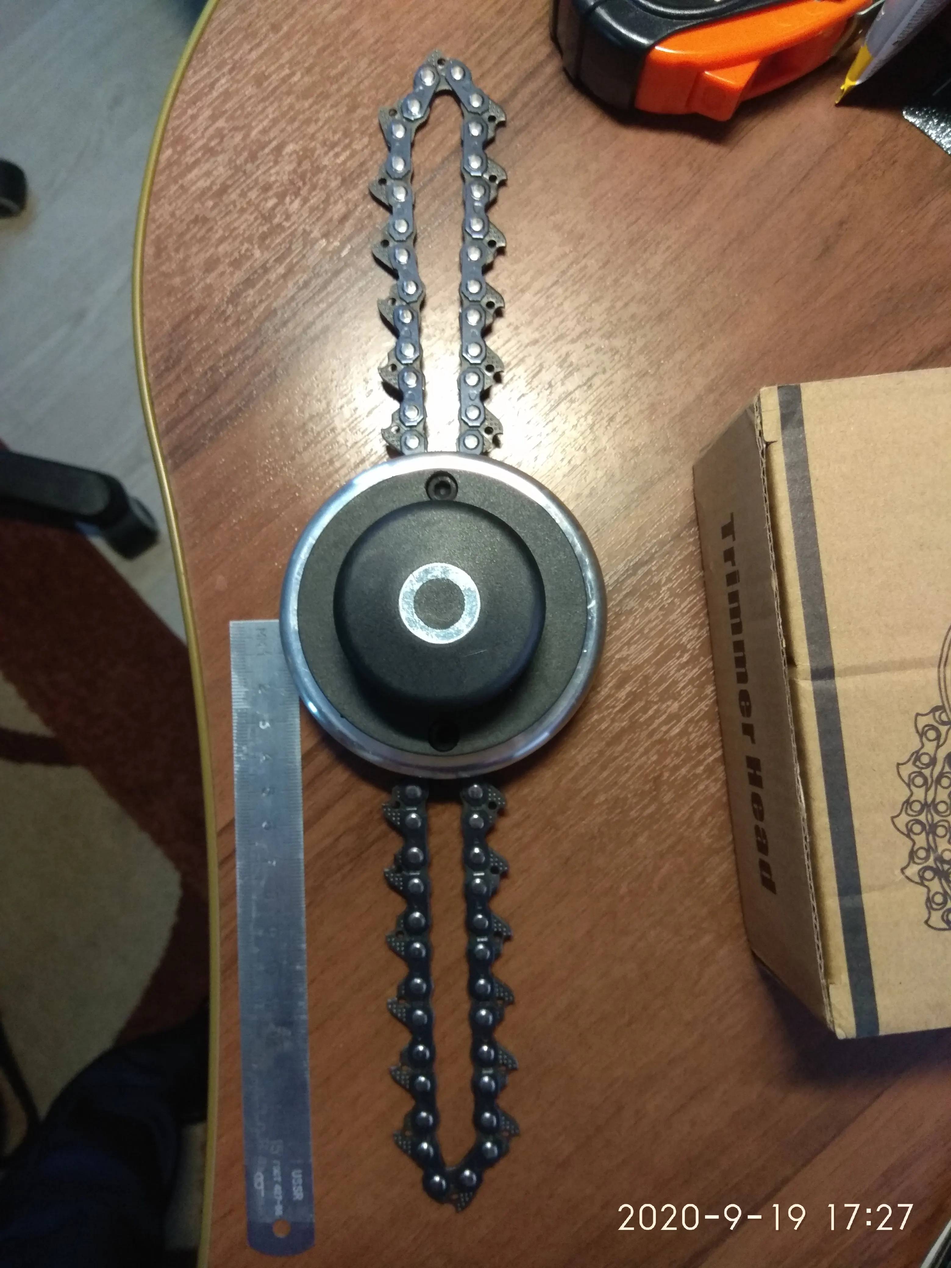 Эта универсальная цепочка не подходит для моей универсальной головки триммера. Отверстия для крепления цепи были слишком маленькими, и это не может быть сделано из описания товара.