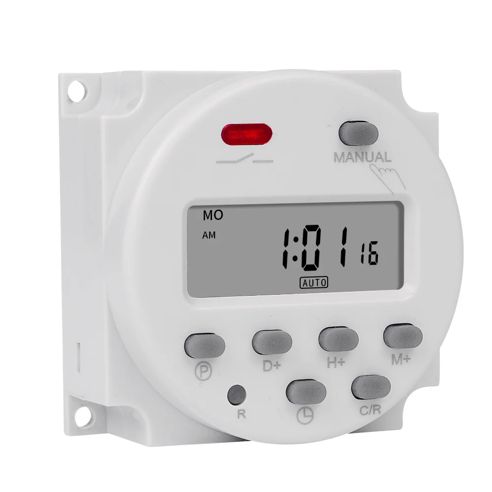 Особенности: 1. Легко читаемый жк-дисплей, светодиодный индикатор. 2,16 программ вкл/выкл в день, 15 комбинаций в неделю. Программируется 3,24 часов/7 дней в неделю. 4. Функция обратного отсчета. Макс. 24 часа обратного отсчета до выключения. 5. Встроенная перезаряжаемая батарея для резервного копирования памяти (сохранение программ, которые вы устанавливаете) при отключении питания. 6. Повторите программы с 16 настройками вкл/выкл и установите вкл/выкл вручную. 7. Идеально подходит для домашнего использования в панеле.
