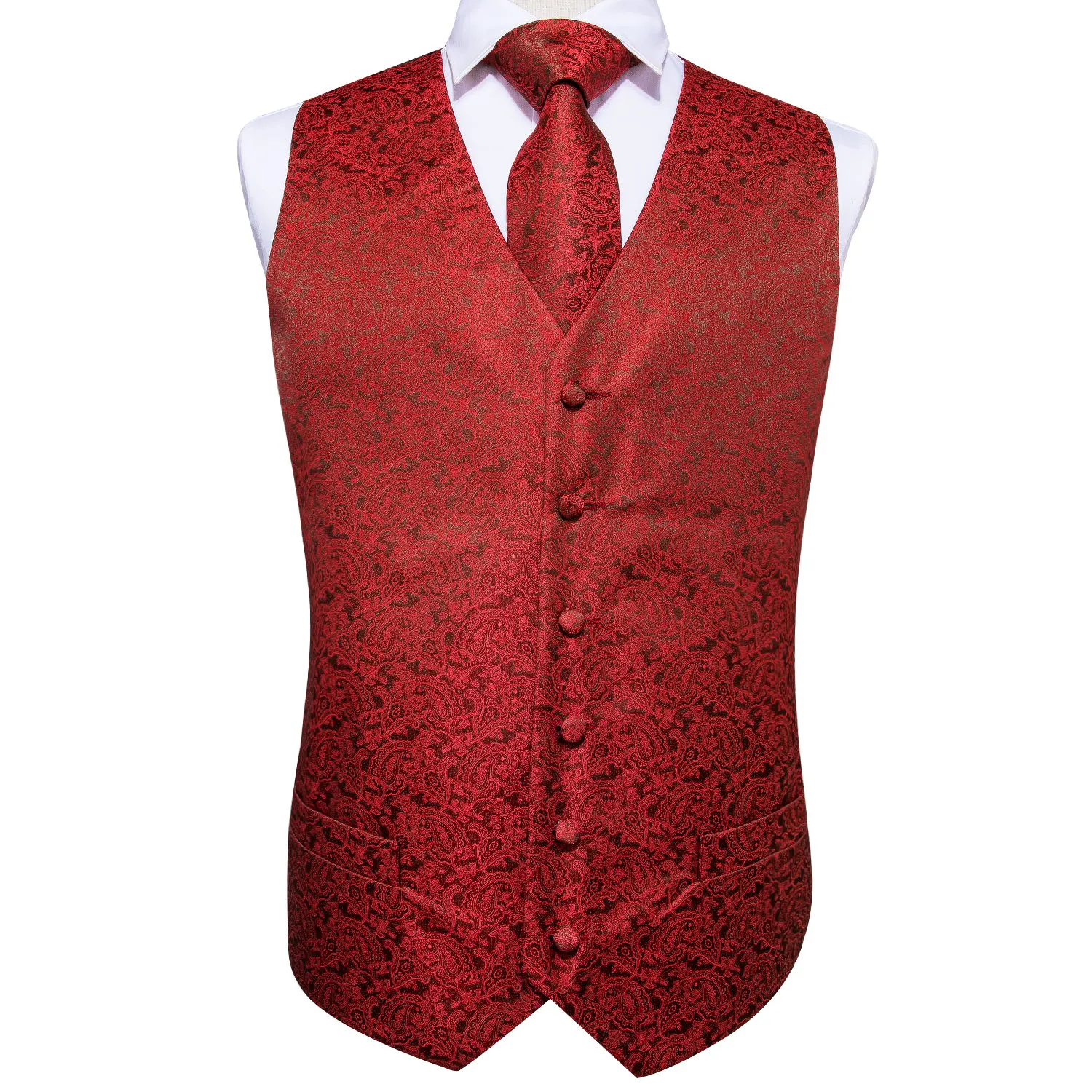 Hi-Tie мужской жилет костюм винно-красный 100% шелк Пейсли тканый в...