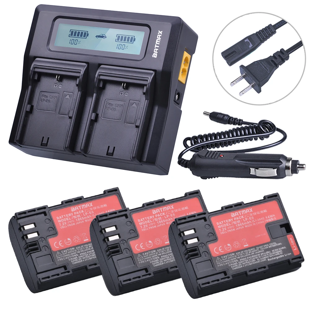 3 шт. LP-E6 LP E6 LP-E6N батарея Сделано с японскими ячейками + LCD быстрое двойное зарядное устройство для Canon EOS 5D Mark II III 5DS 5DSR 6D 7D 60D 90D