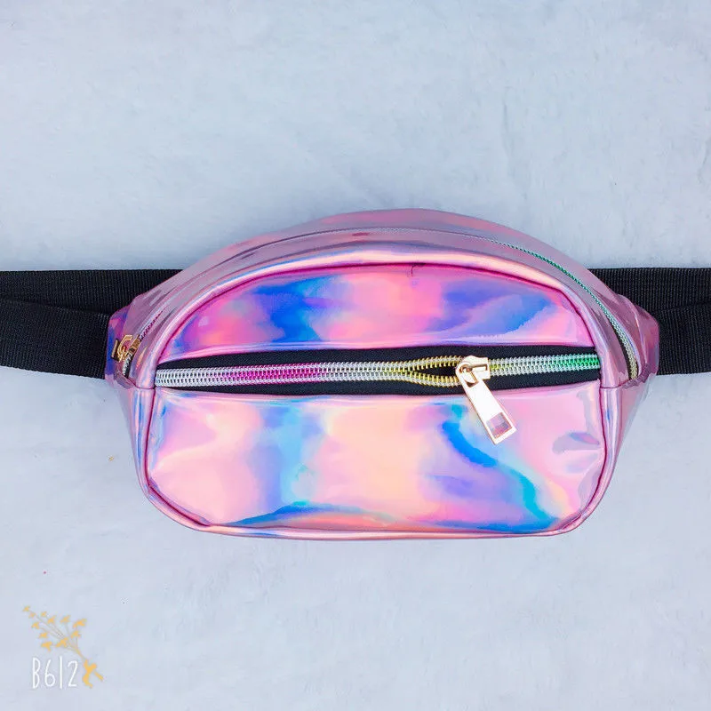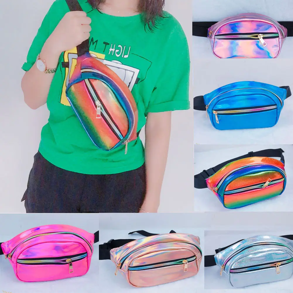 * Описание товара: женская и Мужская нагрудная сумка из искусственной кожи с лазерным покрытием, светоотражающая модная поясная сумка