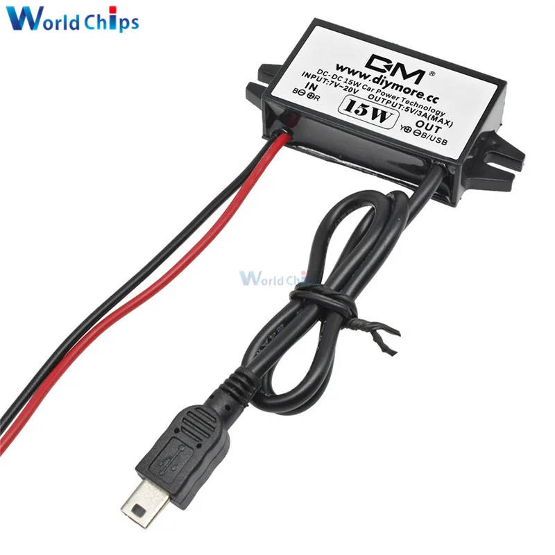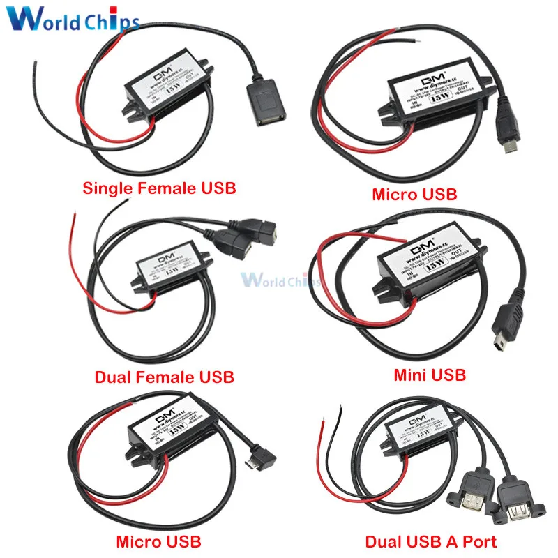 Понижающий преобразователь 12 В до 5 В, 3 А, 15 Вт, DC-DC, модуль питания для автомобиля, мужской, женский, USB-адаптер, Mini USB, адаптер Micro USB