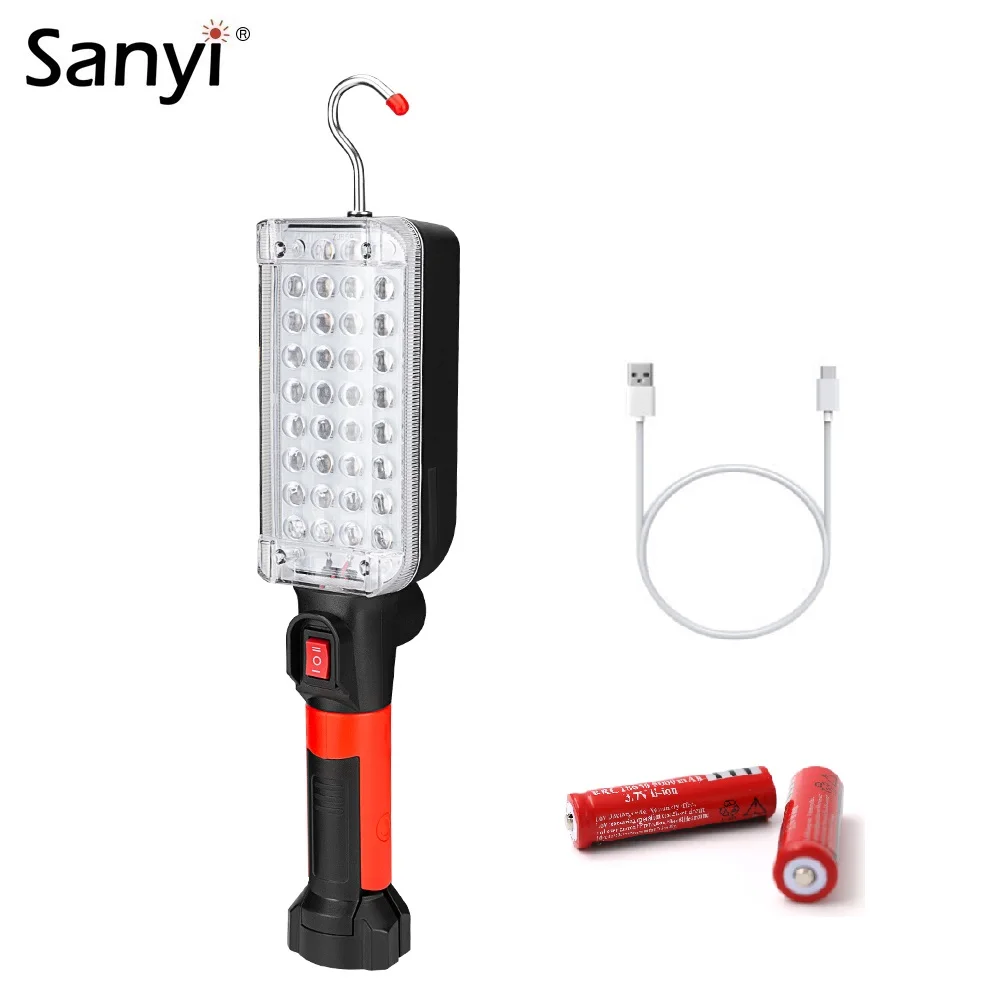 34 светодиода тактический флэш-светильник, магнитный рабочий светильник, инспекционная лампа, USB Перезаряжаемый 18650 фонарь, подвесной крючок, Кемпинговый тент, светильник