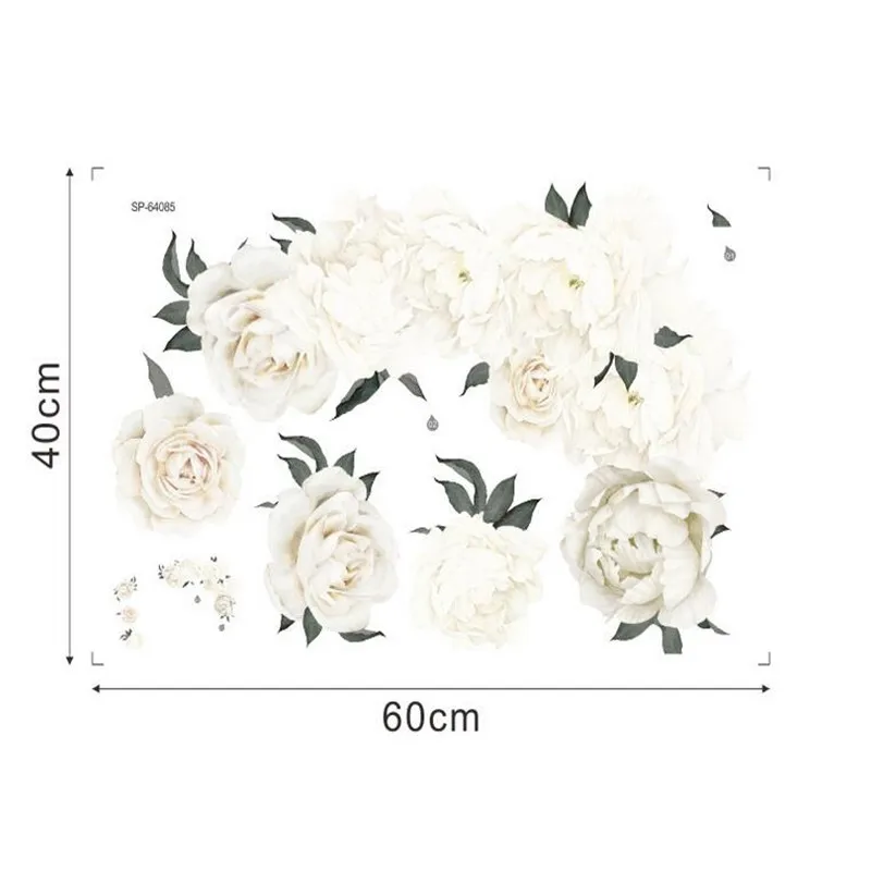 Настенные Стикеры с 3D пионами и розами, белые винтажные обои для спальни, гостиной, настенные наклейки для домашнего декора, подарок для детей и девочек, 1 шт.