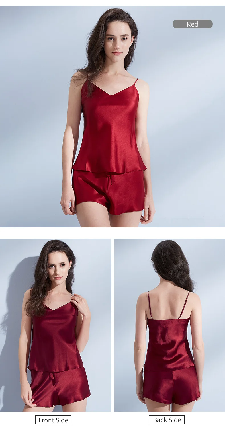 Женский пижамный комплект из 2 предметов, однотонная Летняя короткая пижама из натурального шелка, одежда для сна, 100%