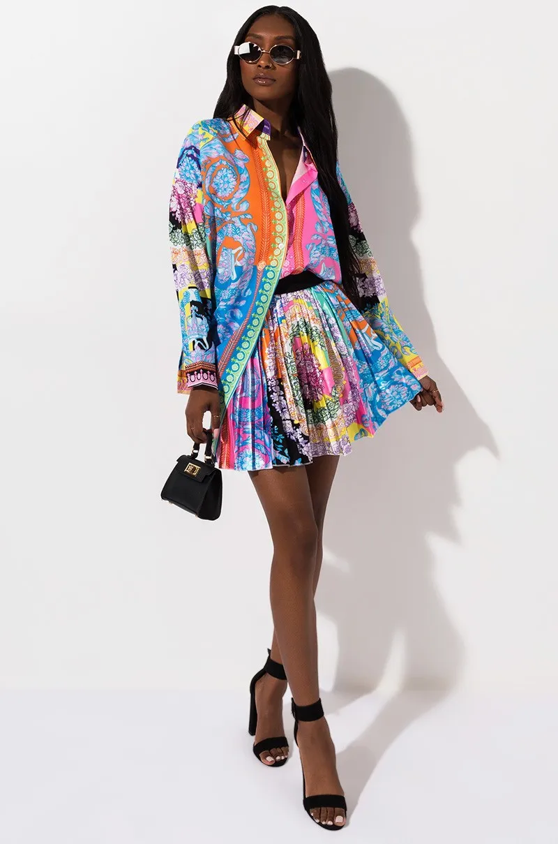 Высокое качество, крой, приятная ткань. Принт на рубашке и юбке выглядит красиво, как на фото. Продавцу необходимо поместить таблицу размеров для этих предметов одежды. Быстрая доставка. Хороший продавец.