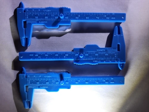 Взял штангель с "литыми" рисками, так как с напечатанными не хватило и на неделю (стерлись). Этот инструмент не для ювелирной точности. Но мне хватает. Есть недочёты по литью пластика, а именно не параллельны губки, но это всё микроны, и с другой стороны что можно ожидать от инструмента который стоит менее 50 рублей.