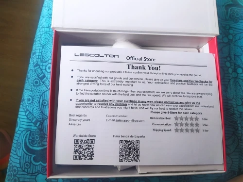 Большое спасибо, Официальный магазин Lescolton за доставку blyskawiczną. Товары zamówilam вчера с доставкой из Польши и сегодня уже otrzymalam! Все в порядке, очень хорошая упаковка и продукт работает. Я zachwycona!: -Д рекомендую! Я люблю такие покупки :-)