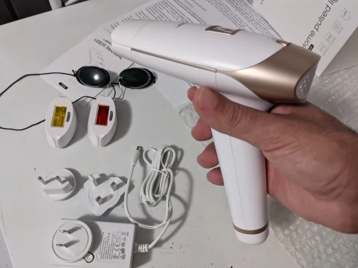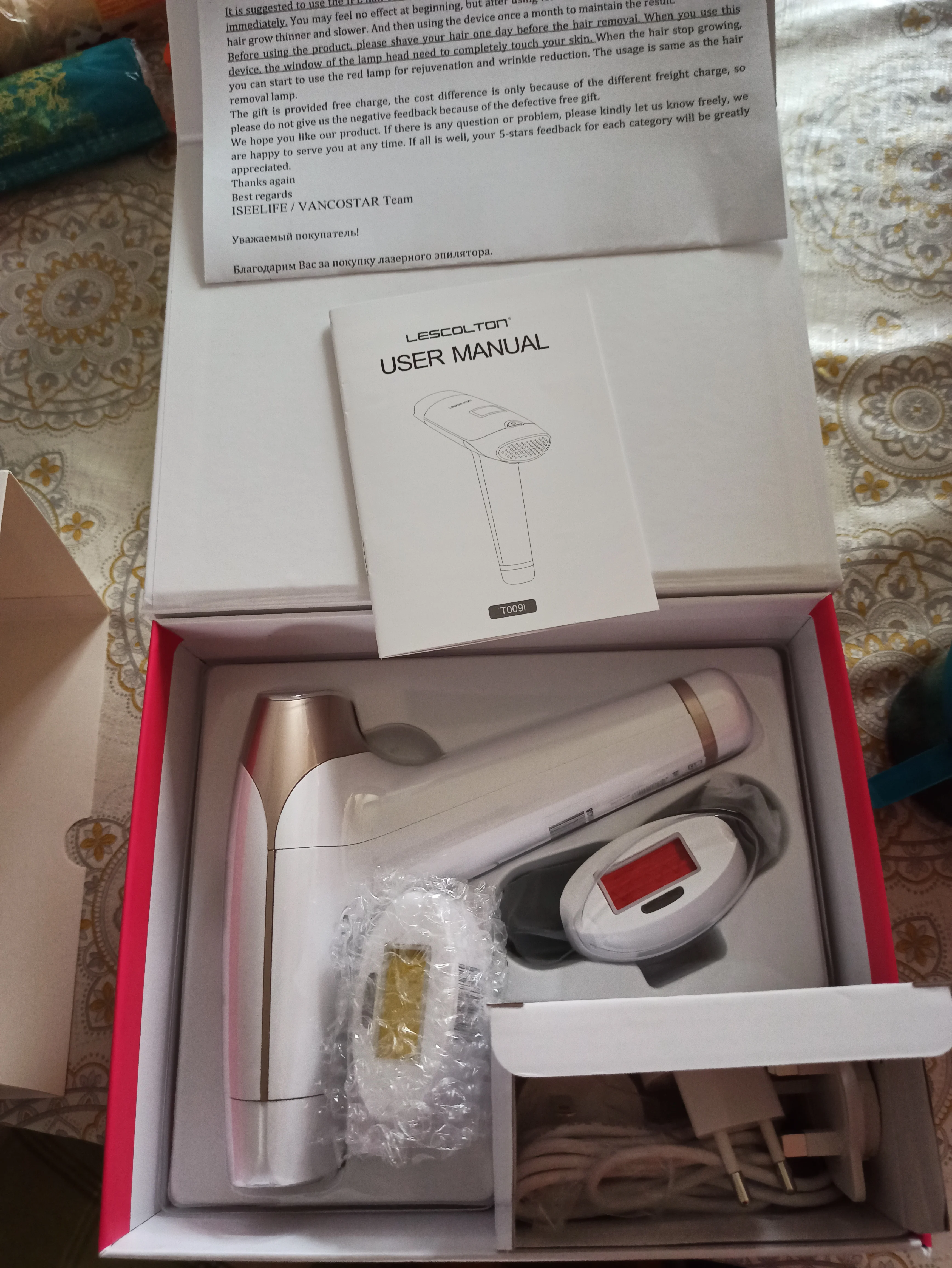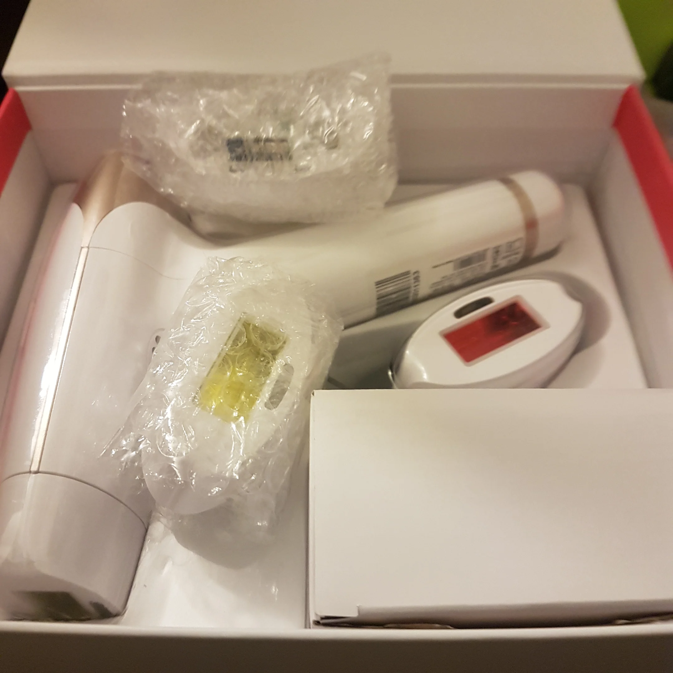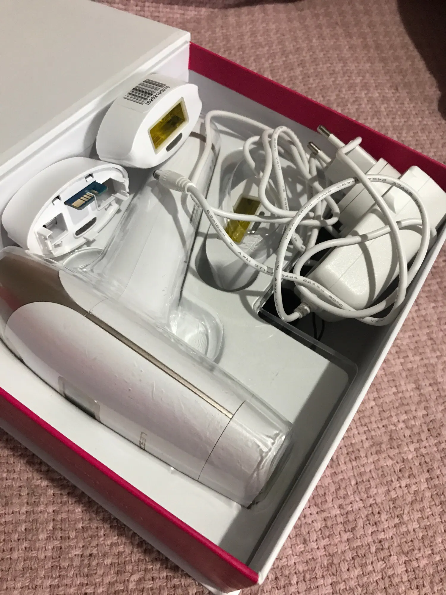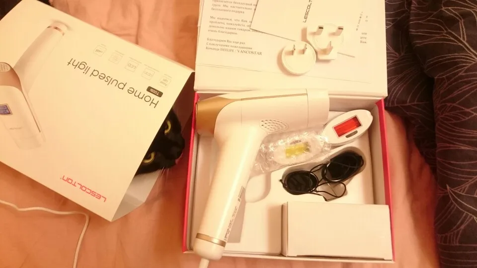 Эпилятор принес курьер через 9 дней после заказа. Описание точное. В комплекте идут две запасные лампы, адапторы под разные розетки, защитные очки. Коробка на магнитах, мелочь, а приятно. Эпилятор мило жужжит.