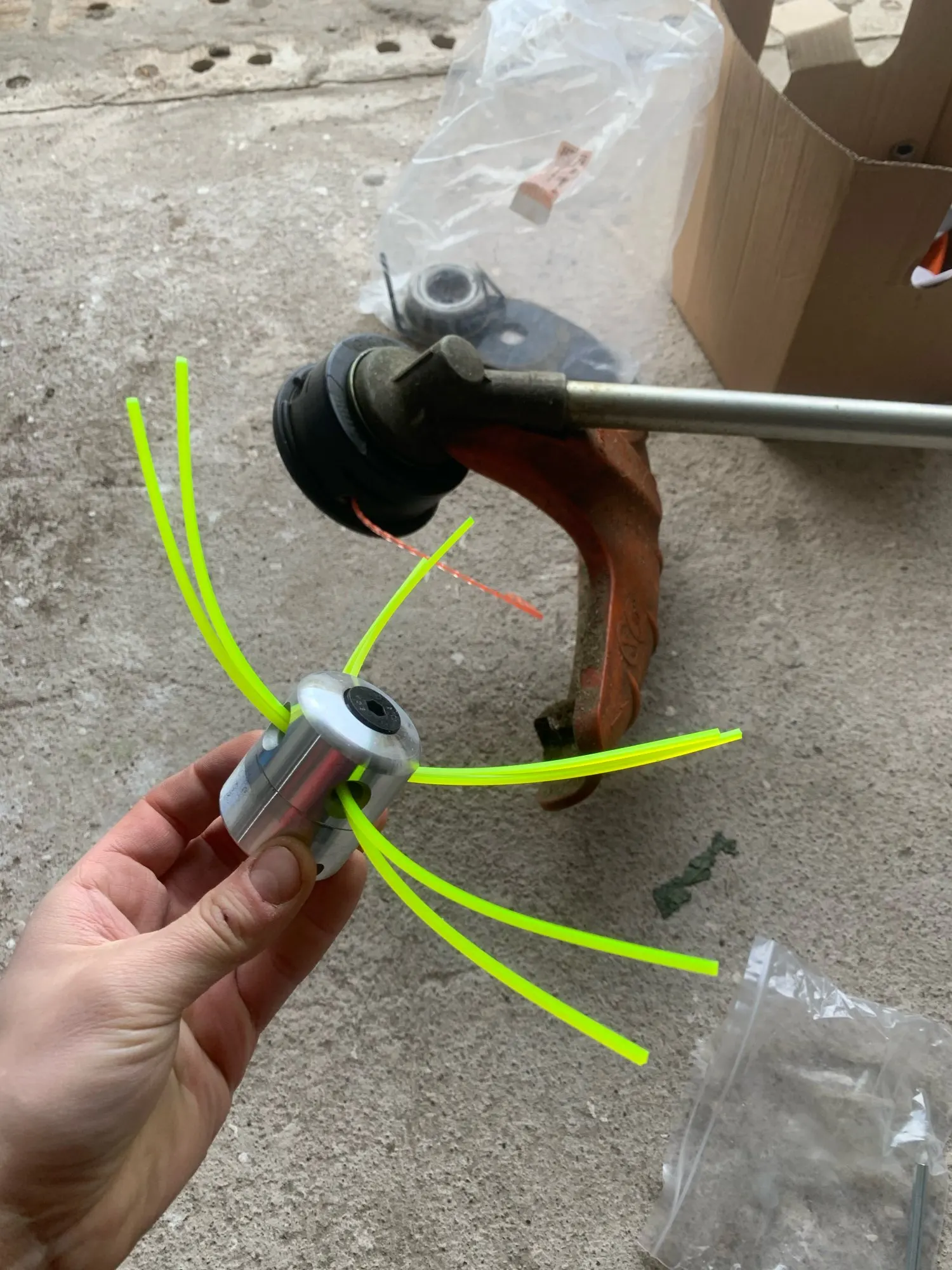 здравствуйте,сегодня получил эту головку для примера выглядит достойно ,продавец товар отправил быстро спасибо ему думаю буду заказывать у него ещё проверю через неделю напишу как в деле думаю с такой леской будет резать всё подряд ! продавцу 5+ молодец ещё раз спасибо!!!