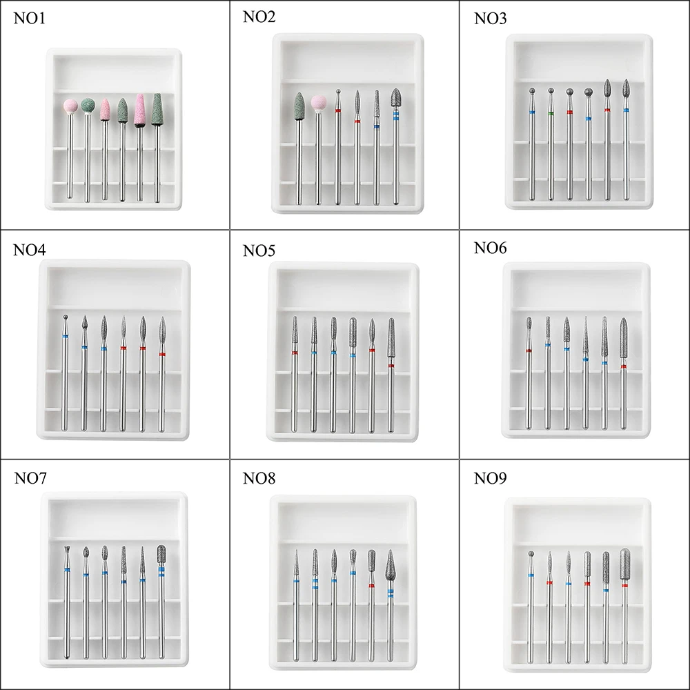 6 шт.компл. профессиональная маникюрная дрель для ногтей Электрический набор для ногтей типсы каменные керамические корундовые резаки полировка аксессуары для маникюра