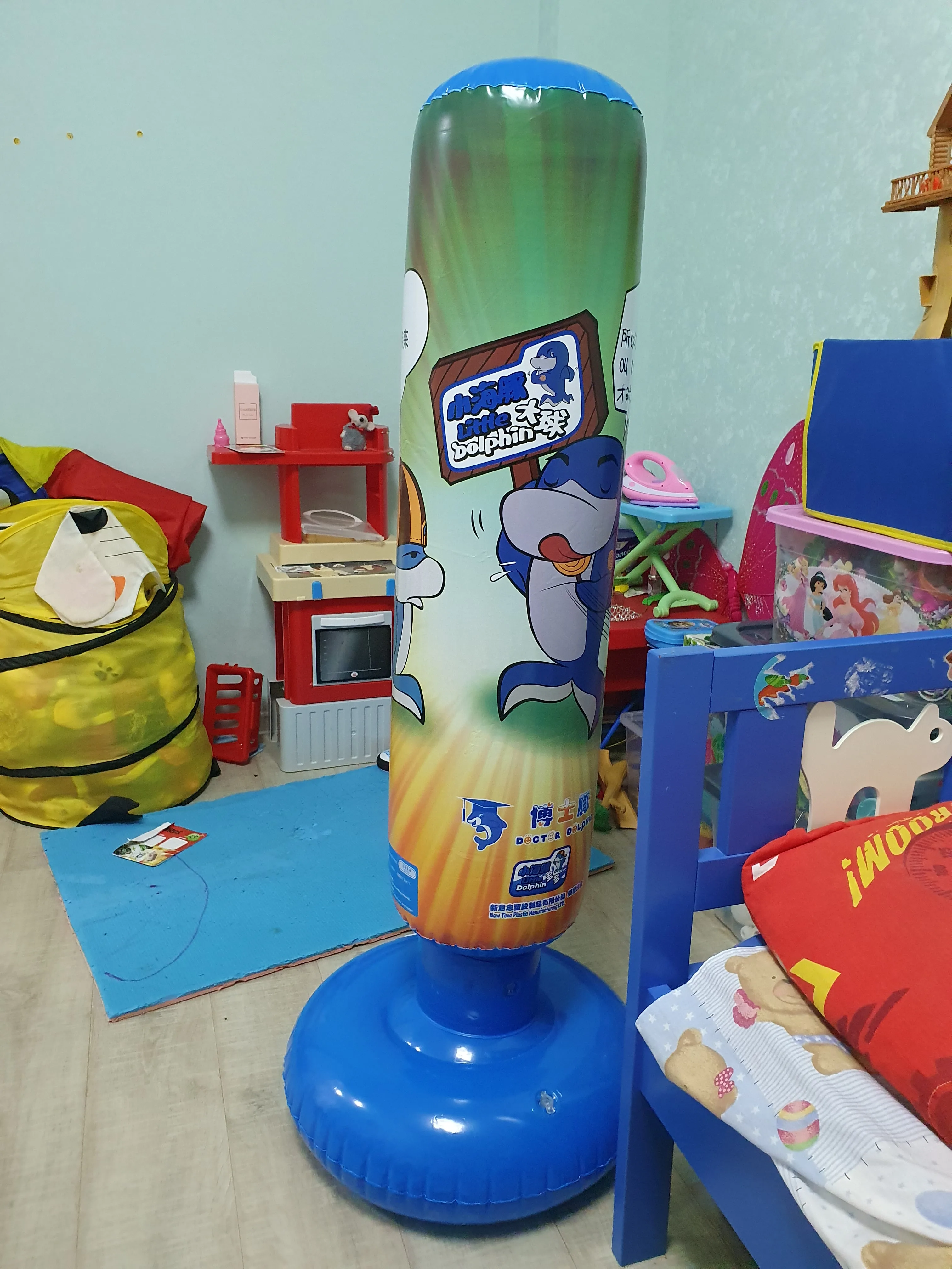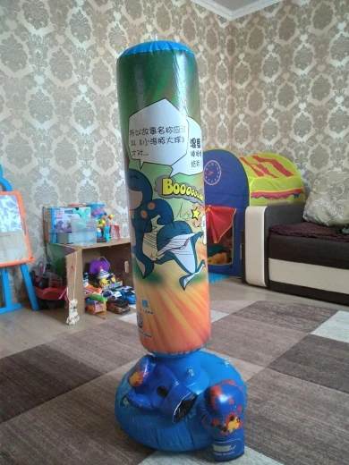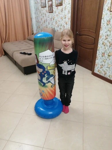 Доставка заняла 5 дней(из РФ).Отличная груша. Для ребёнка 118 см подошла идеально. В нижний отсек наливается вода для устойчивости,так же дно «прилипает» к полу. Но все же советуем придерживать грушу при жестких ударах. С продавцом не общались