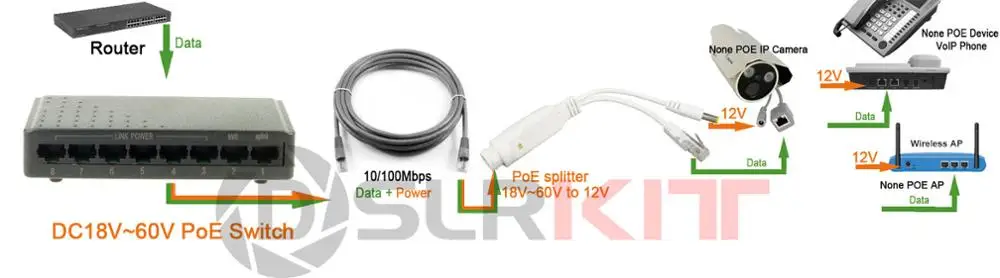DSLRKIT 8 портов 6 PoE Kit (переключатель + PoE разделитель) 18V-55V до 12V DC понижающий преобразователь