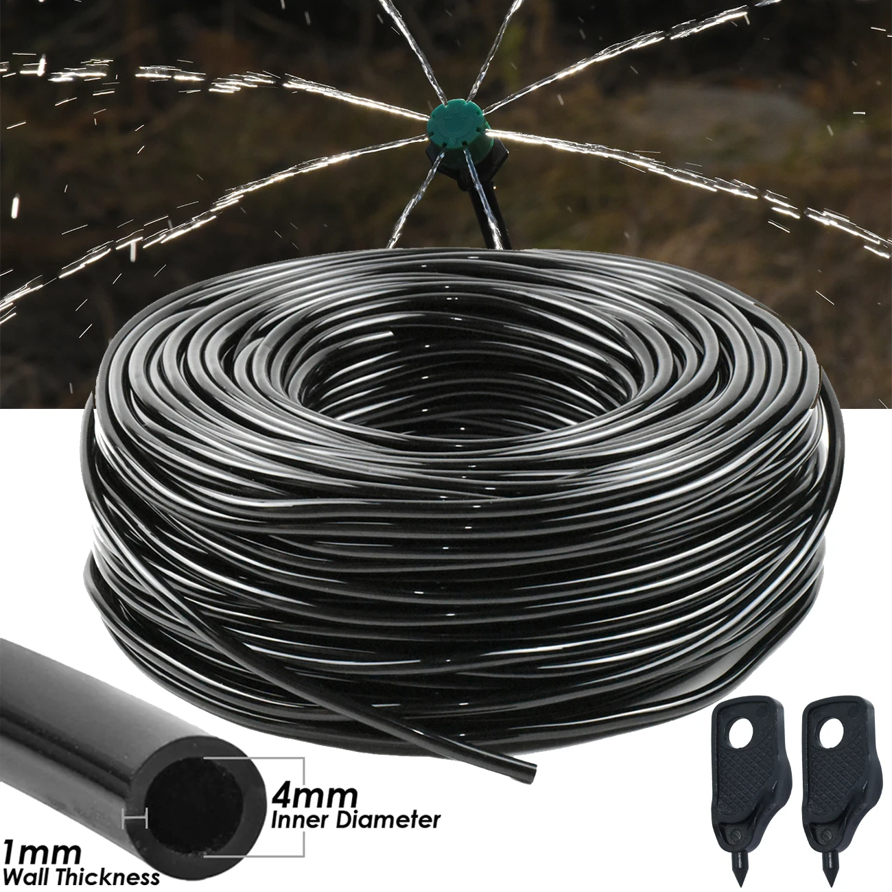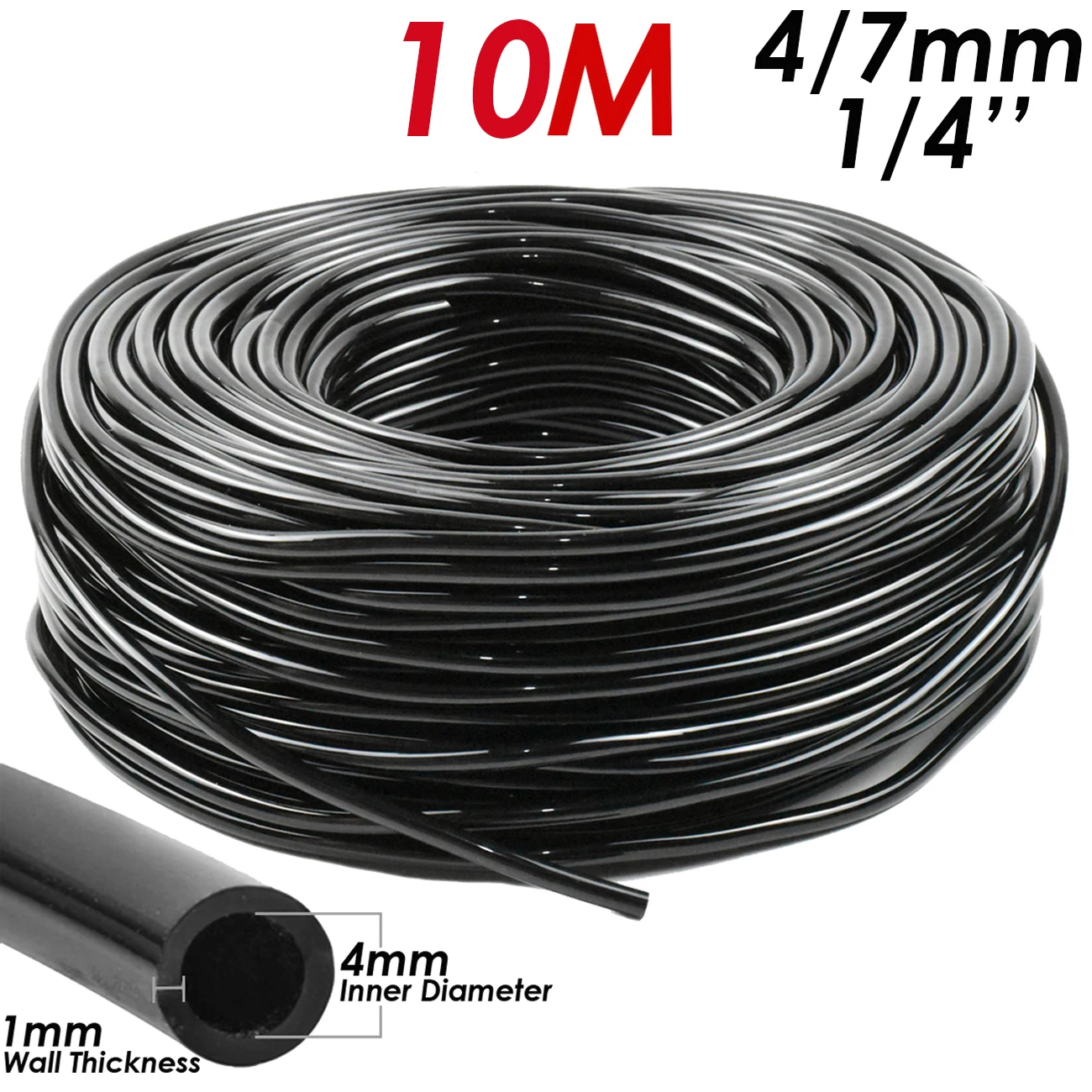 Катушка для шланга составляет 4/7 мм (1/4 ''), внутренний диаметр 4 мм. Он изготовлен из абсолютно нового ПВХ материала. Он отлично подходит для сада капельного орошения.