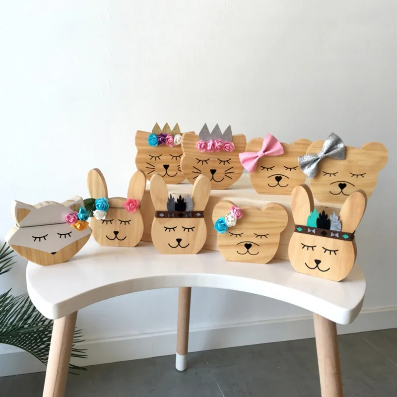 Скандинавский деревянный декор в виде животных, настенное украшение в виде головы лисы, Детская фотокомната, настенное украшение