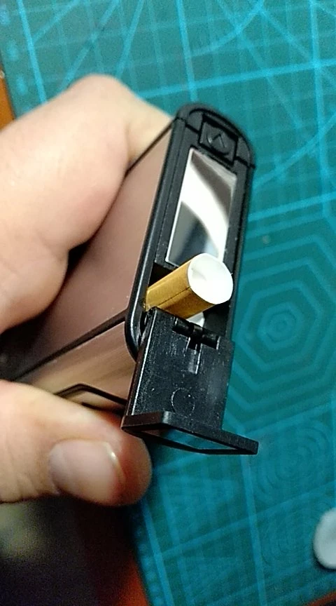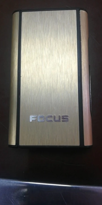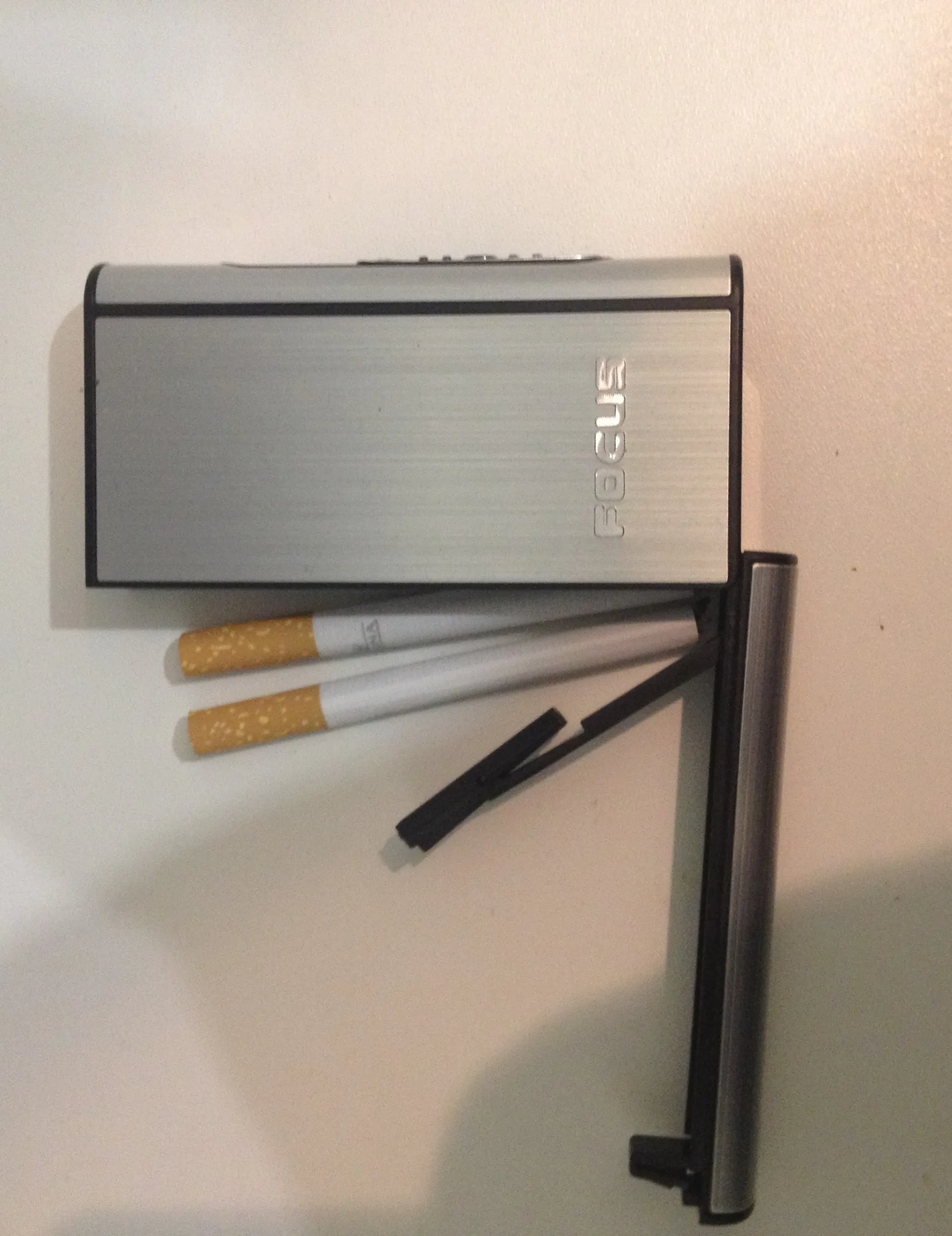 Хороший портсигар на 8 стандартных сигарет(можно впихнуть и 9, но начинает заедать механизм) Корпус пластик, с алюминиевыми вставками по кругу. С торцов хромированные вставки. Механизм прижима и подачи сигарет так же пластик.