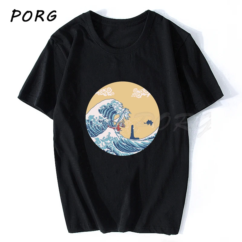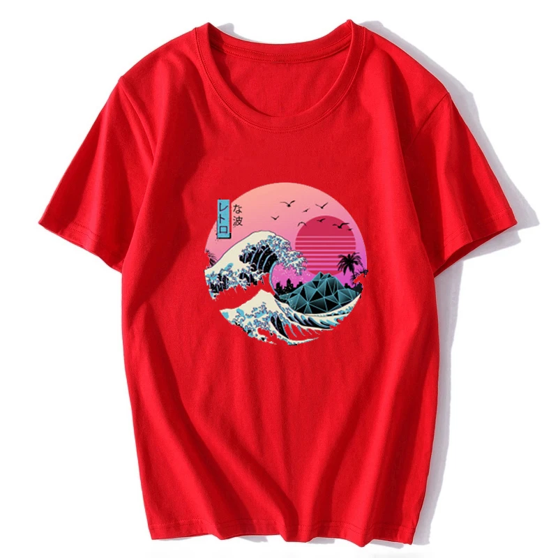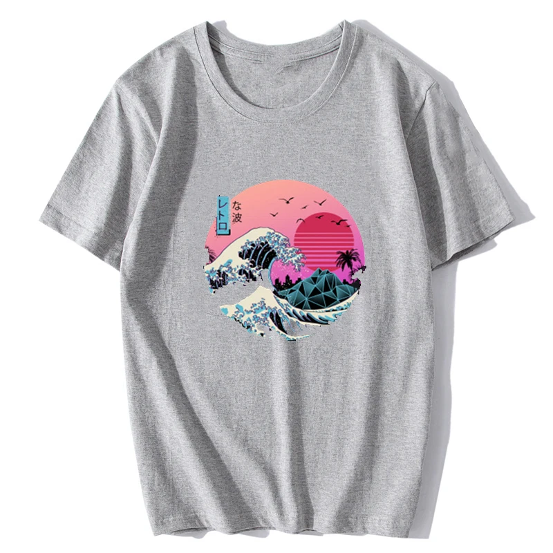 Футболка в стиле ретро, японское аниме Волна, уличная хлопковая Футболка Ulzzang Harajuku, Мужская забавная крутая 3d футболка