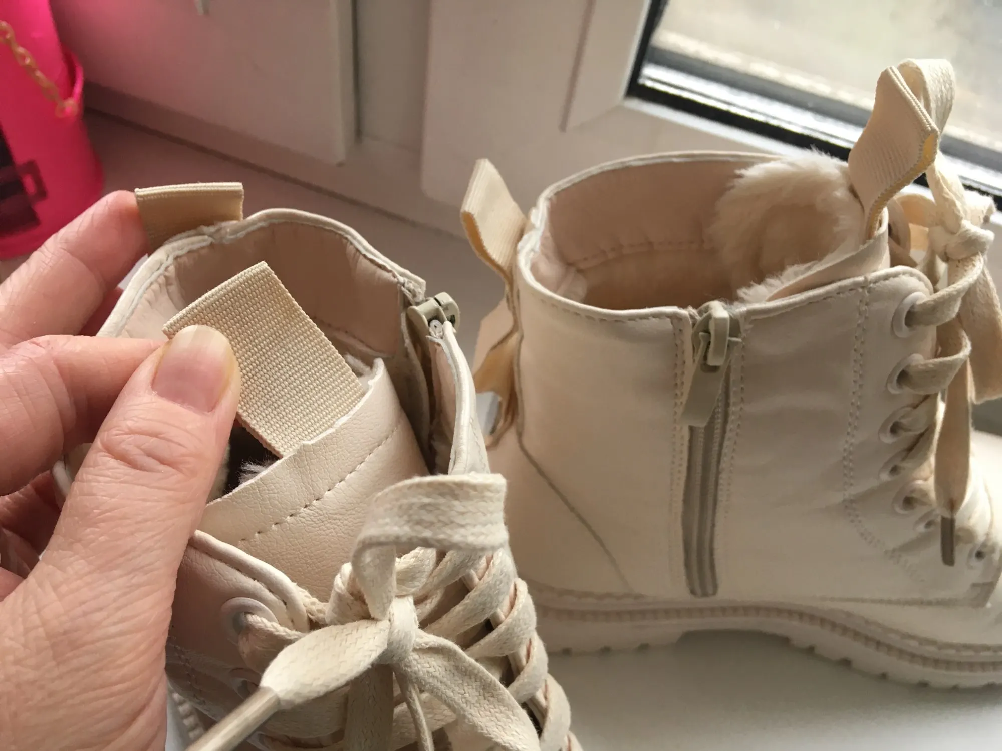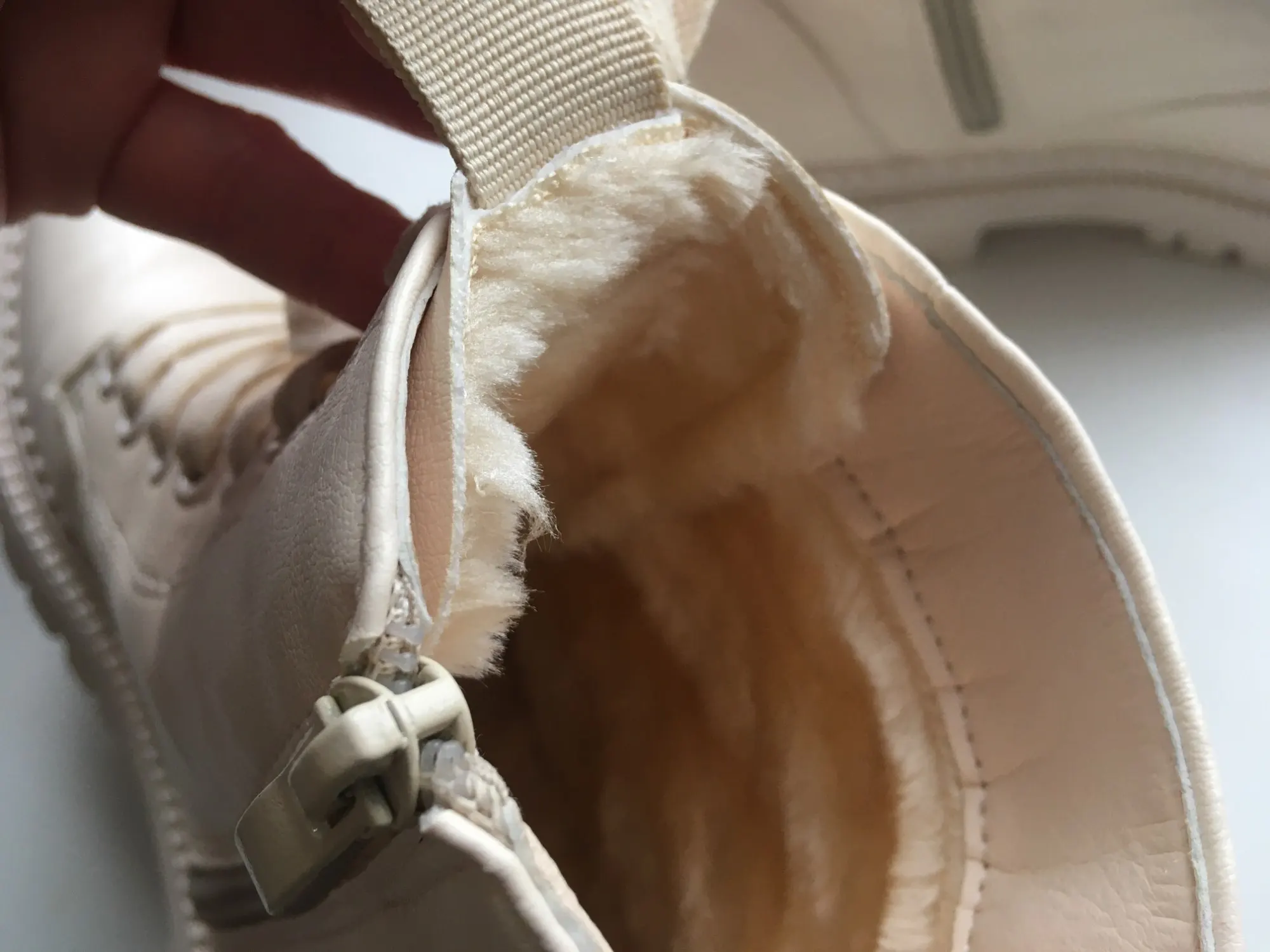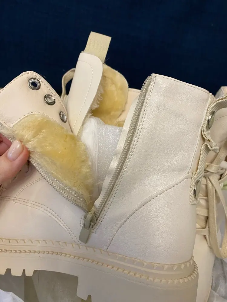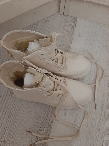 Я в восторге! Хочу сказать продавцу большое спасибо за такую быструю доставку! До Саратова пришли ботинки ровно за неделю! Отправили сразу после оплаты ! Это самая быстрая доставка с алиэкспресс! С продавцом не списывались так как размер я сама себе подобрала идеально по размерной сетке на мой 39 размер взяла 9, стопа 25 см, сидят отлично померила быстро на тонкий носок, но по ощущениям что на более прохладную погоду можно спокойно и потолще одеть . Сами ботинки приятного бежеватого оттенка, выглядят хорошо , швы ровные. Из небольших минусов отмечу сам мех внутри, он не очень толстый, но у нас зима то холодная то тёплая , так что пойдёт носить думаю до минус 15, ну а тем кто на автомобиле постоянно передвигается будет идеально. И второй минус это то, что остаётся на носках ворсинки меха но не очень критично! В целом отличные ботинки за такую цену! Советую!