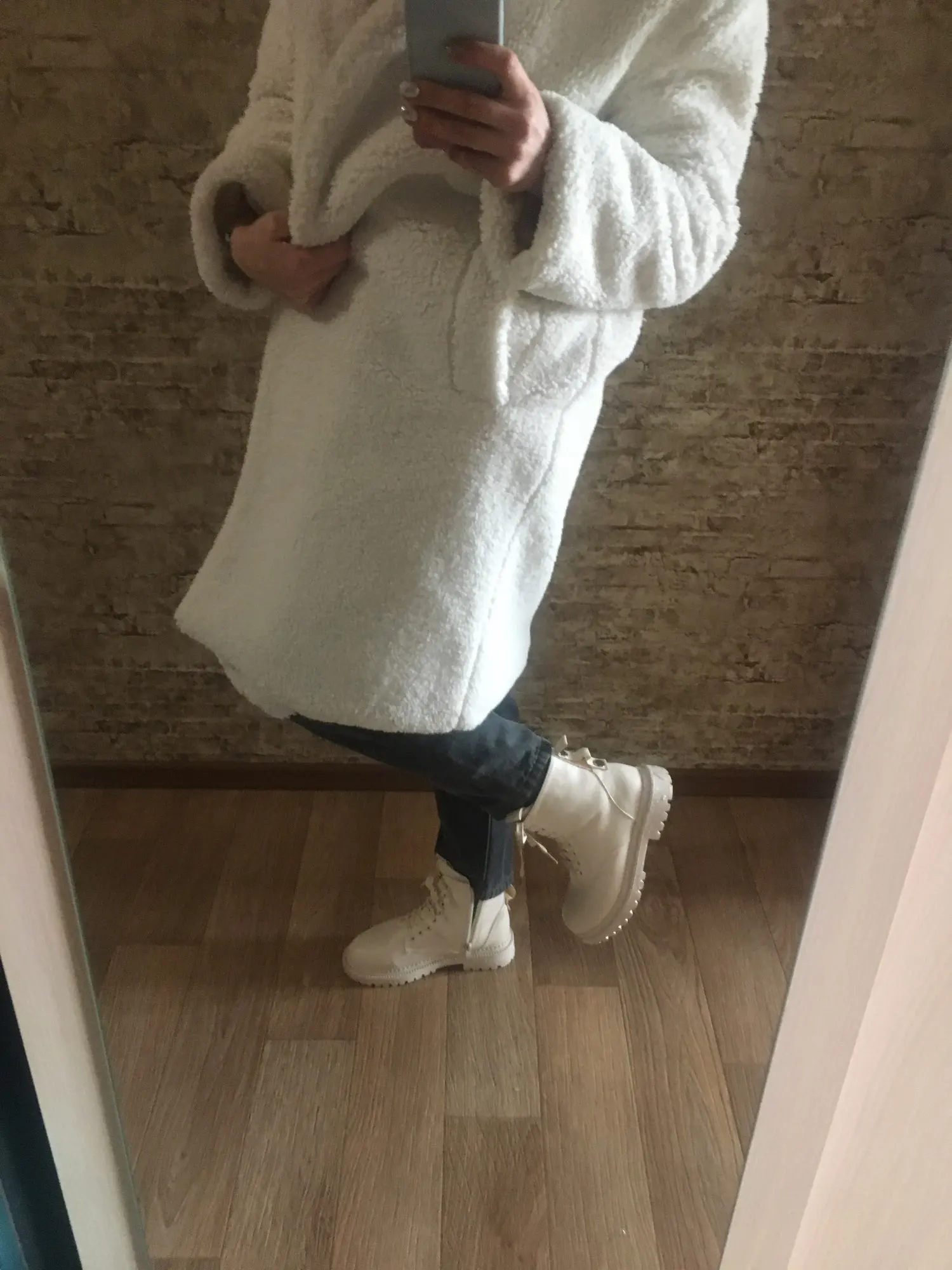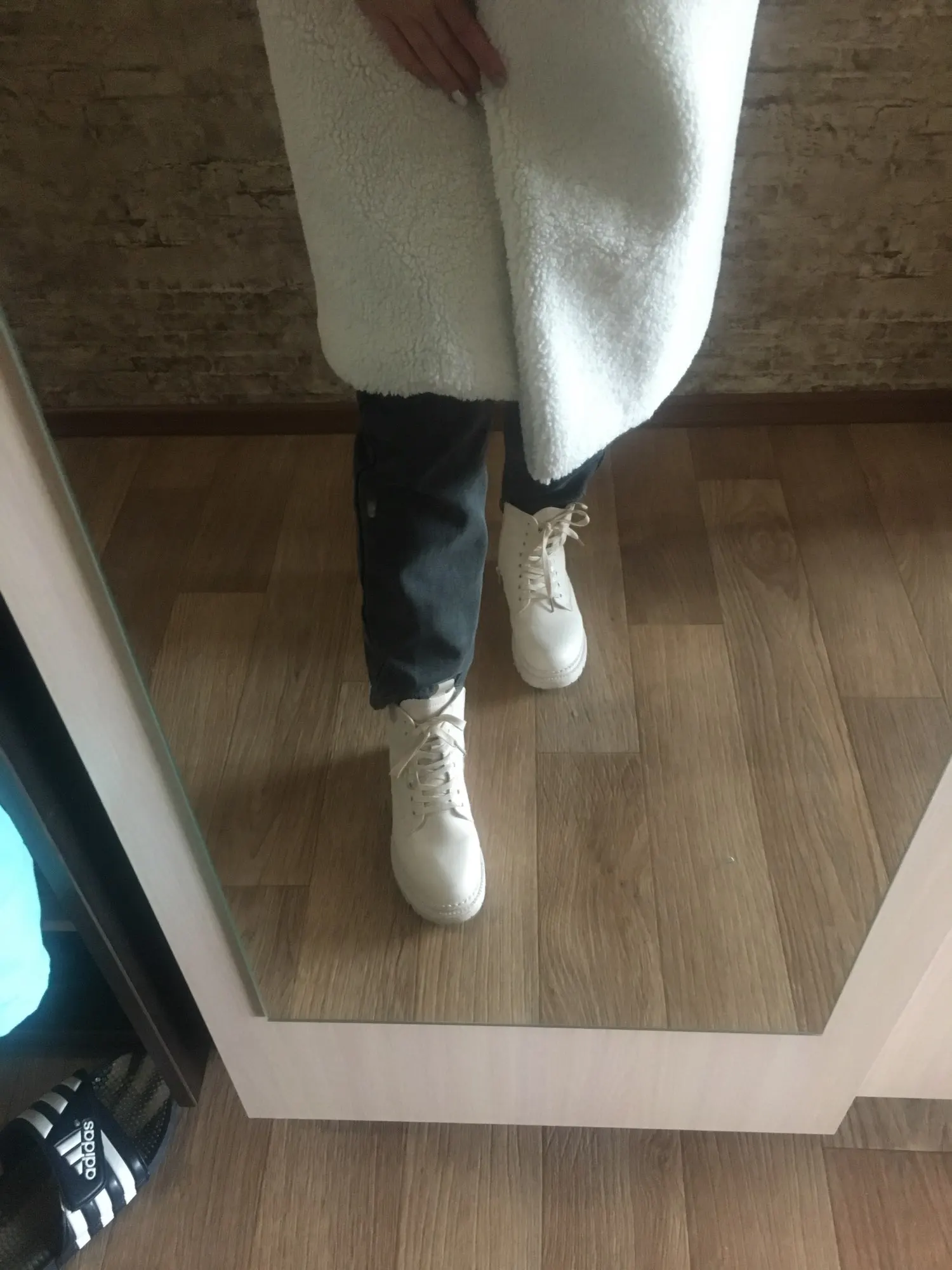 Дошли за 2 недели до Рязани) Ботинки классные, на ноябрь тёплые, посмотрим как зимой) Смотрятся красиво) Единственный минус, мех липнет на носок) Но не критично! В целом все хорошо! Одни смотрятся белыми, а с белой кофтой- бежевые)