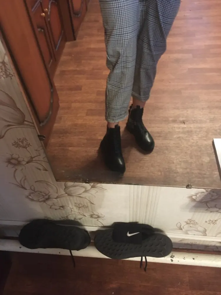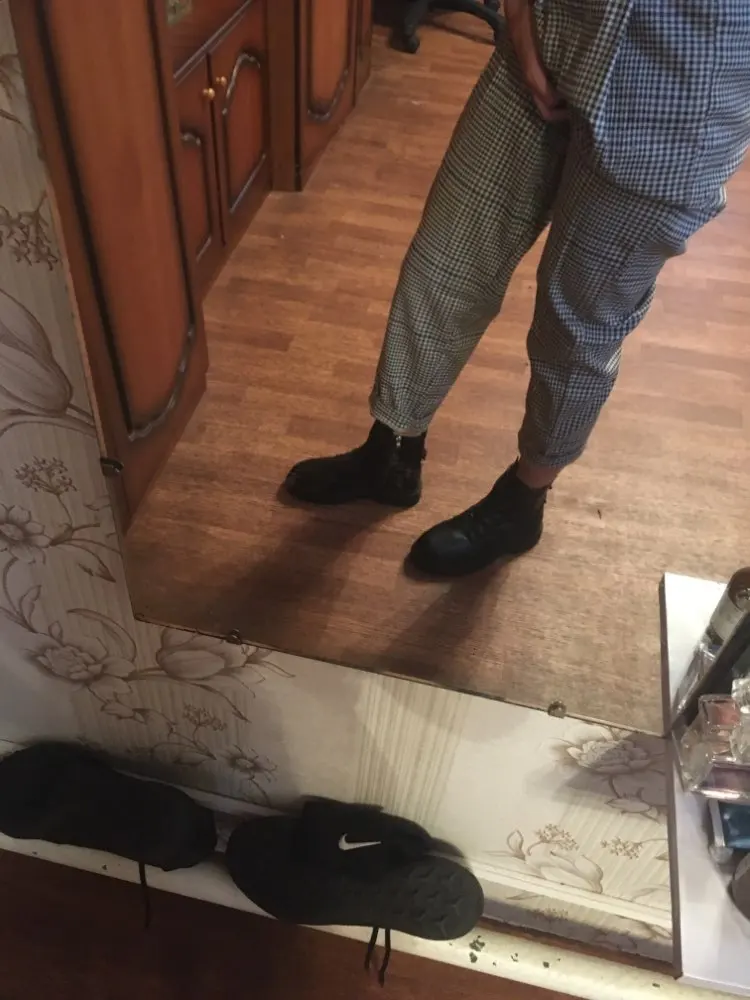 Ботинки нереально крутые! На 25см самый большой размер чуть маловат. Ботинки на узкую ногу с небольшим подъемом. Подошва приклеена, посмотрим как будет в носке! Надеюсь не развалятся в первый же день!!! Запаха неприятного нет! Пришли за 6 дней до москвы. Из минусов - мех внутри лезет. Это моя первая обувь с али! Я очень довольна покупкой!