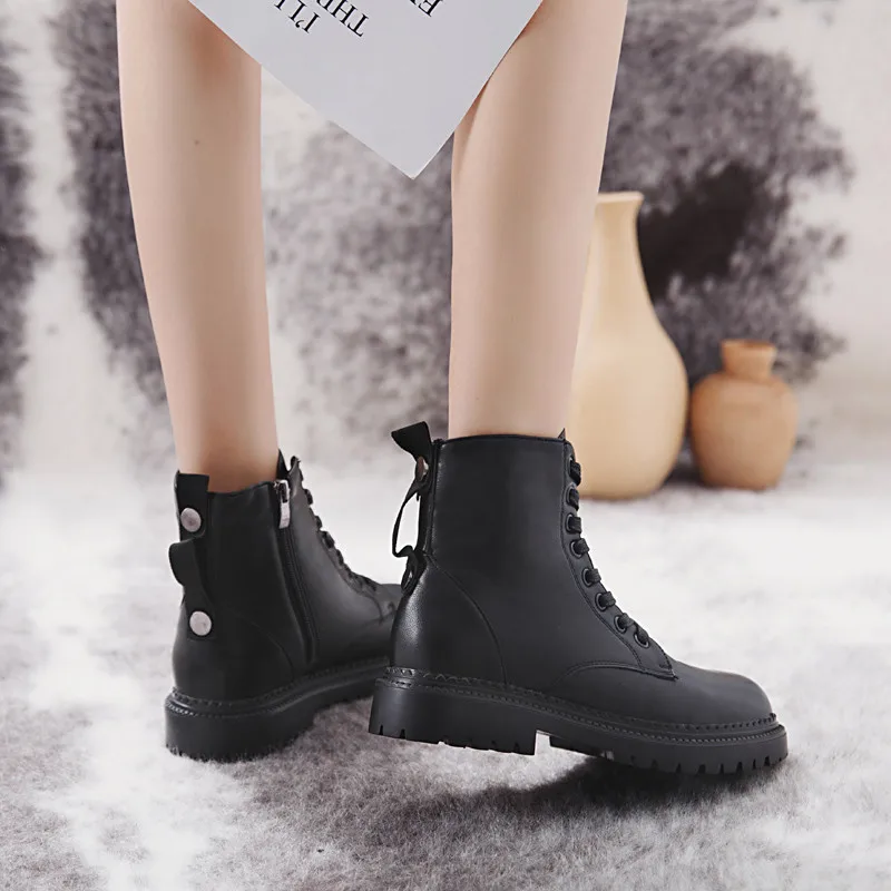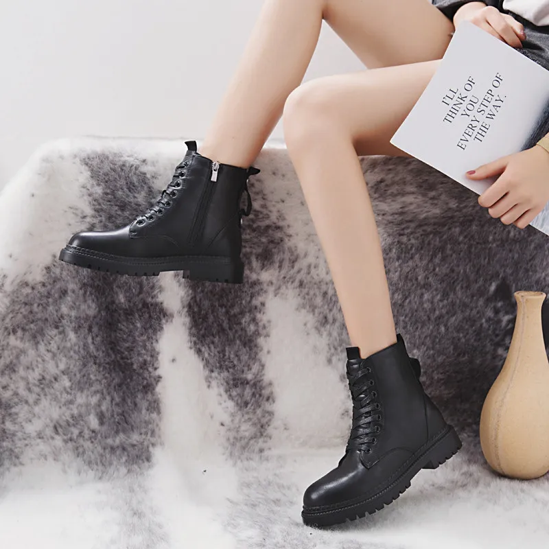 COOTELILIМодная обувь на плоской подошве на молнии женские ботинки из искусственной кожи на высоком каблуке и платформе женская обувь на шнуровке ботильоны для девочек 35-40
